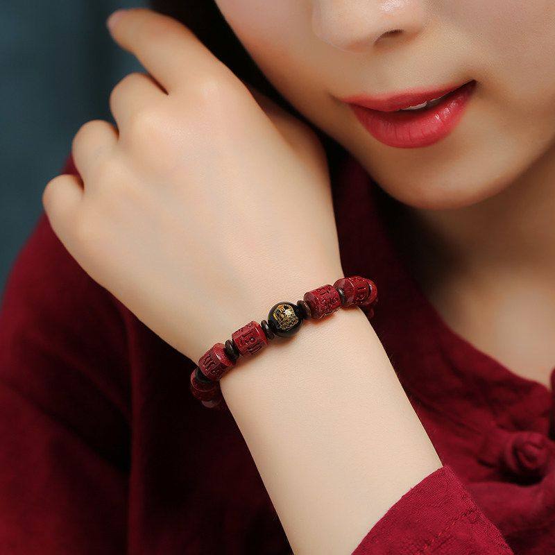 普陀山朱砂手串珠蛇年手链本命年普贤护身手镯官方旗舰店正品