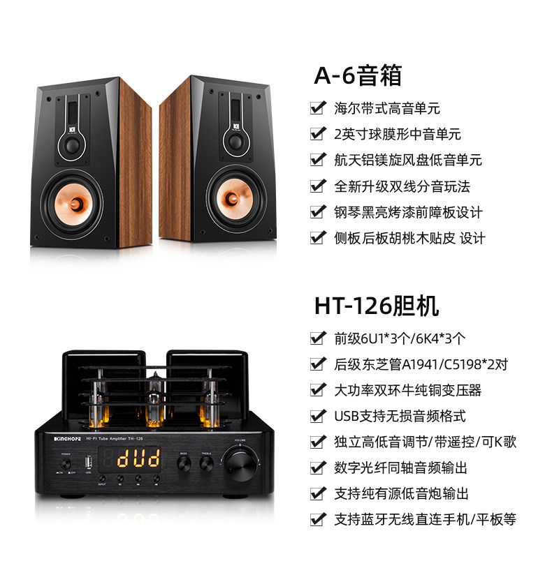 KINGHOPE A-6发烧电子管胆机组合音响套装书架音箱功放hifi发烧级
