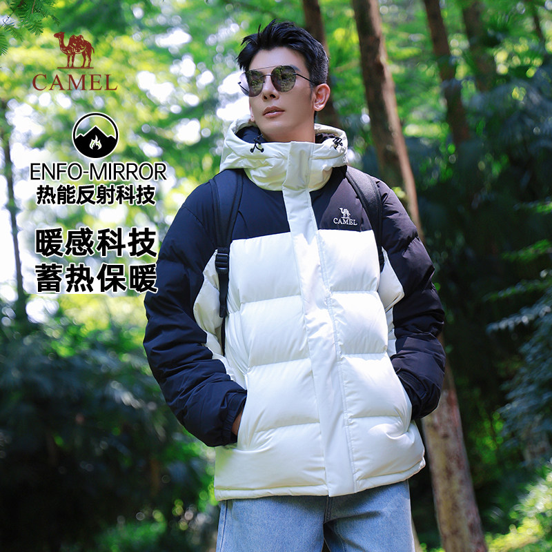 骆驼男装秋冬黑色加厚保暖鸭绒短款面包服男女同款防水羽绒服外套