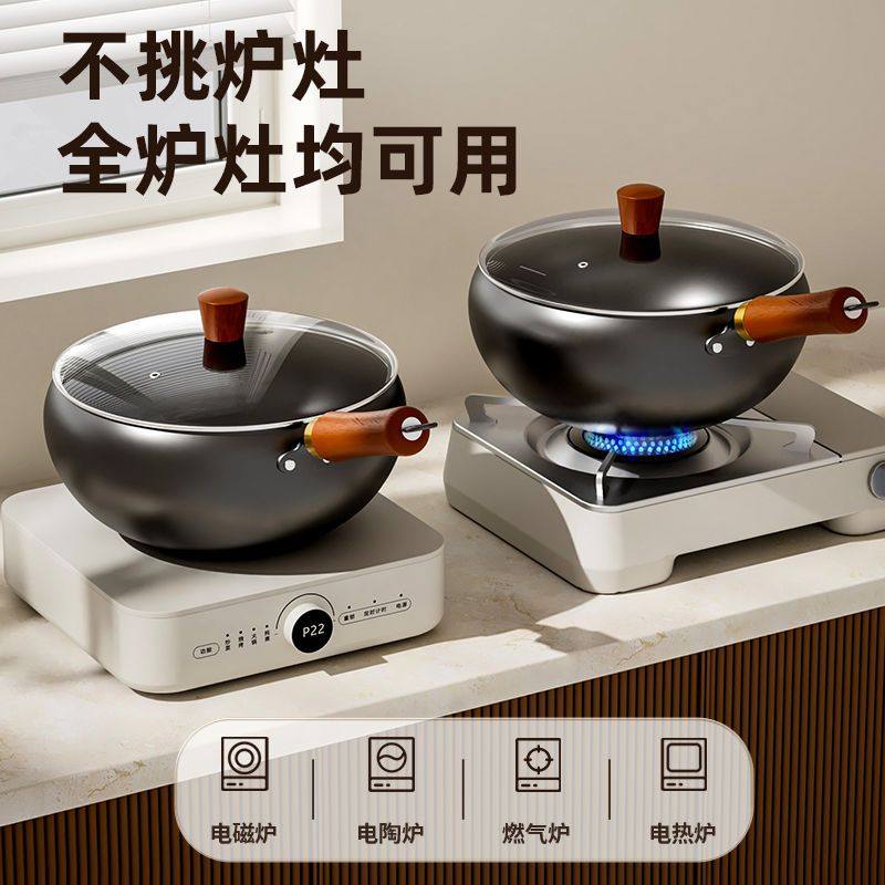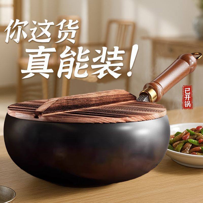 铁锅官方旗舰炒菜锅老式炒锅铁锅家用不粘锅无涂层燃气灶适用