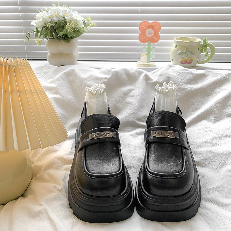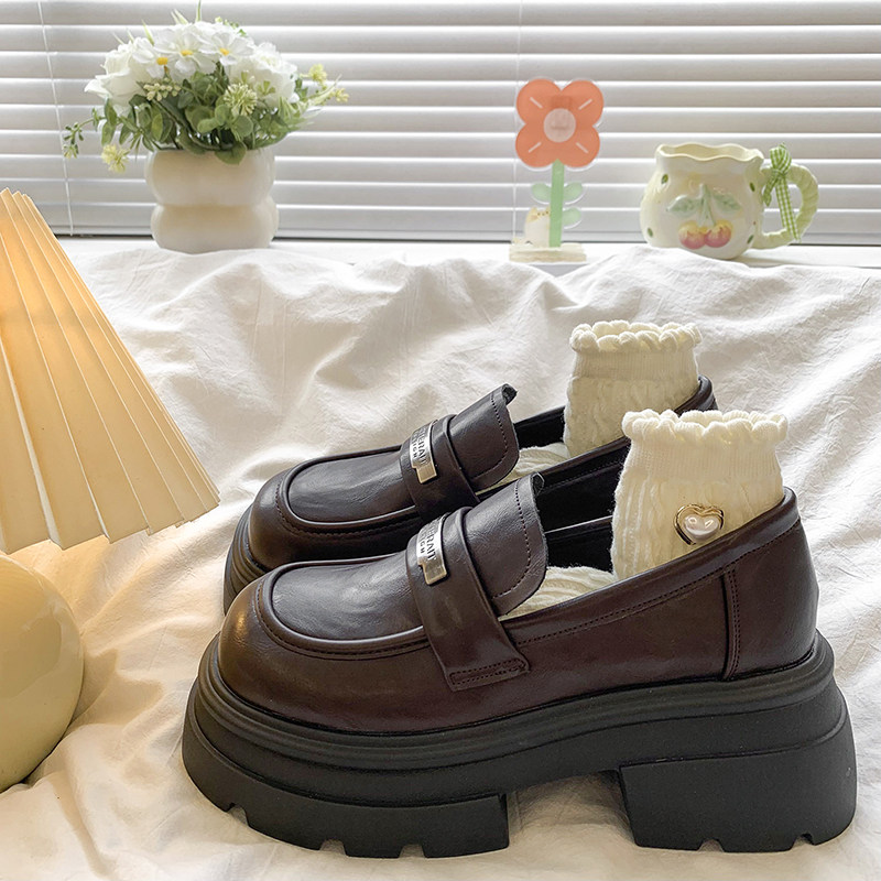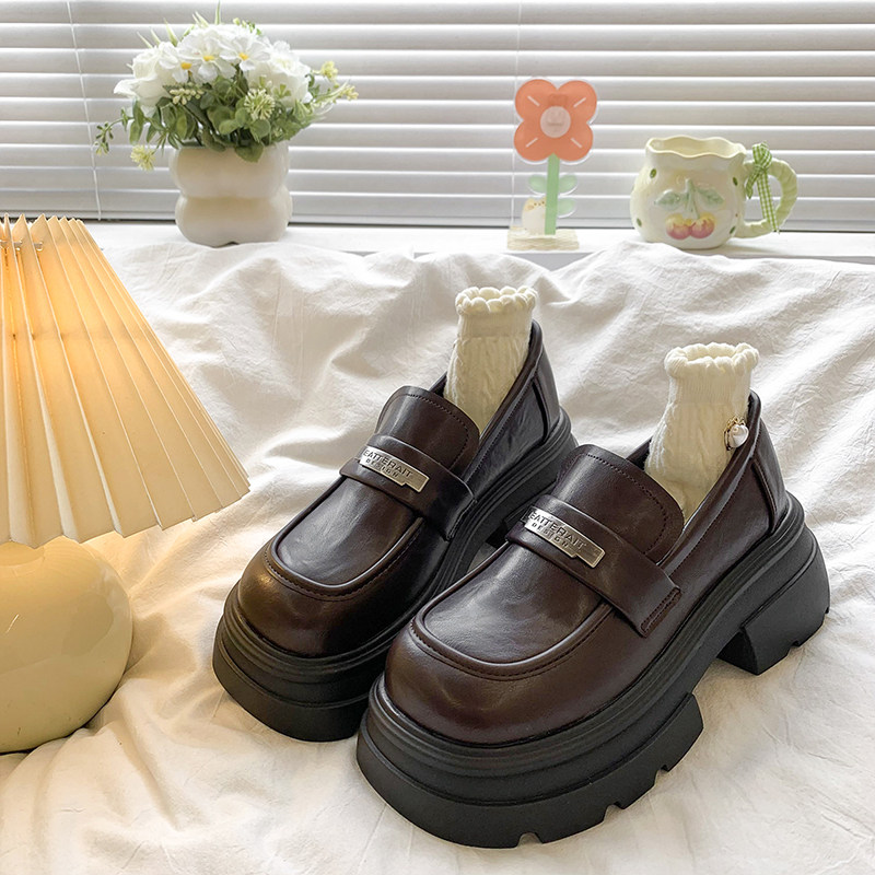 厚底粗跟乐福鞋女2025夏季新款增高黑色女鞋英伦风小皮鞋中跟棕色