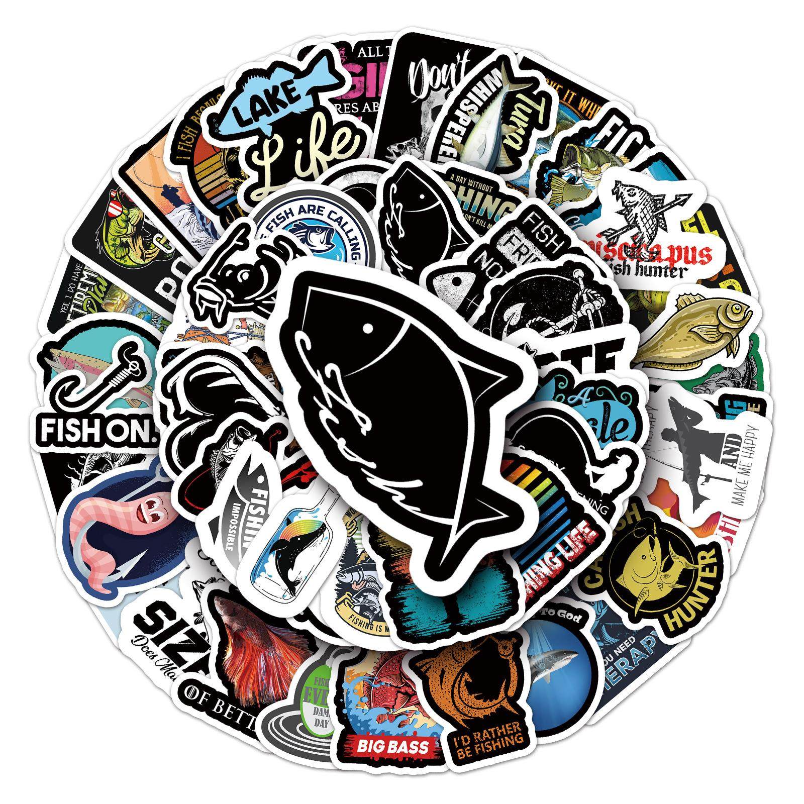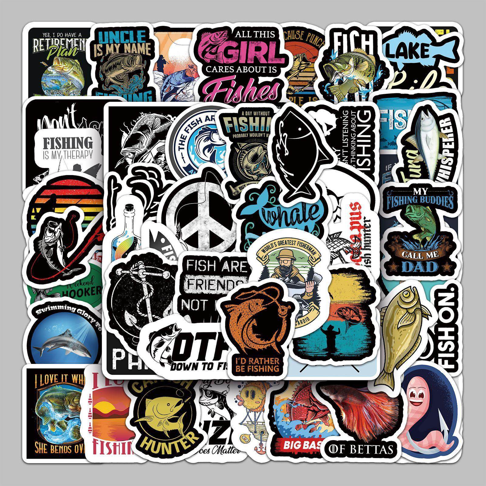 52张不重复钓鱼系列卡通户外创意拉杆行李箱死飞个性贴纸防水跨境
