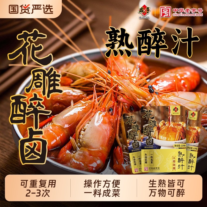 咸亨花雕醉卤熟醉汁醉虾蟹小龙虾罗氏虾生熟腌海鲜卤汁话梅调味汁