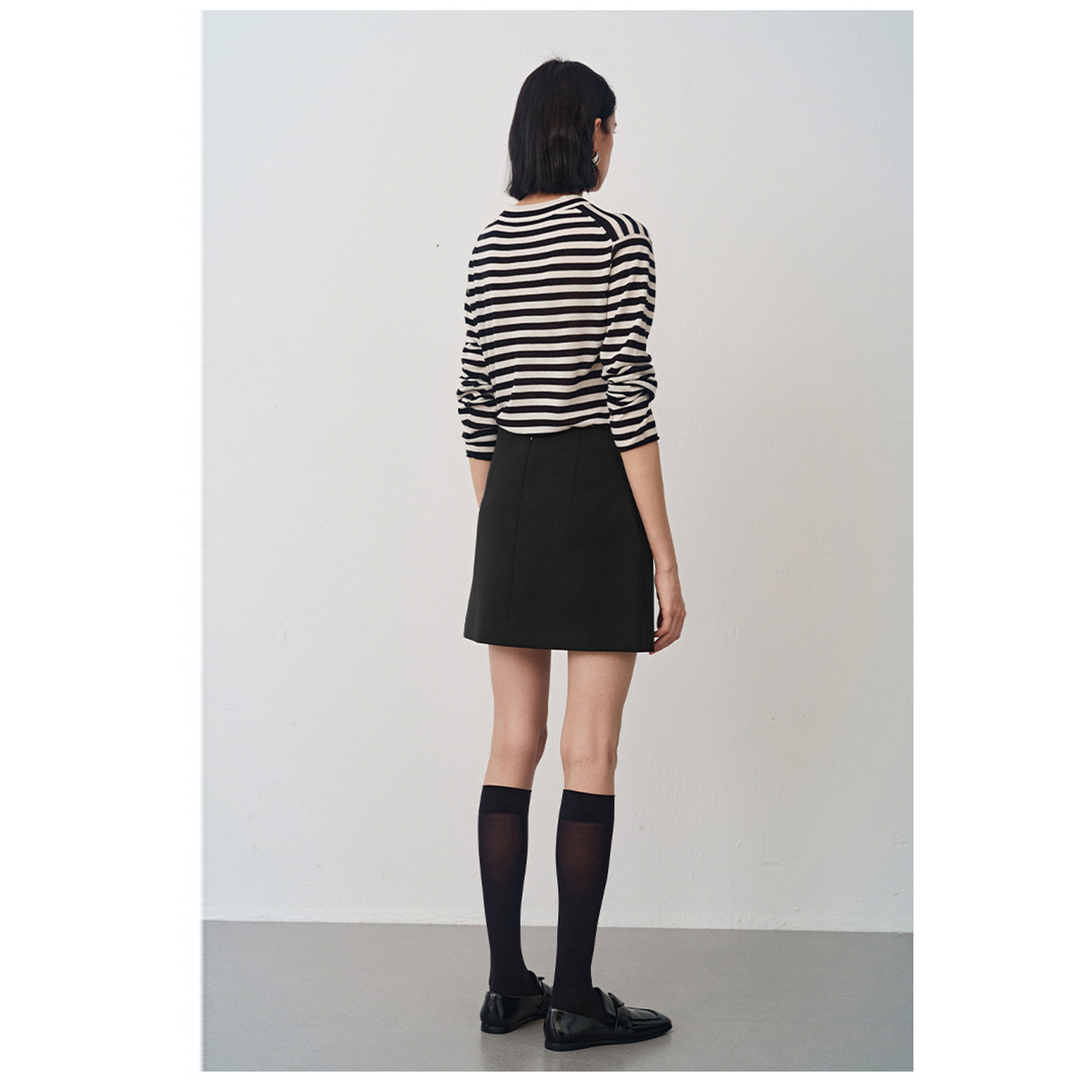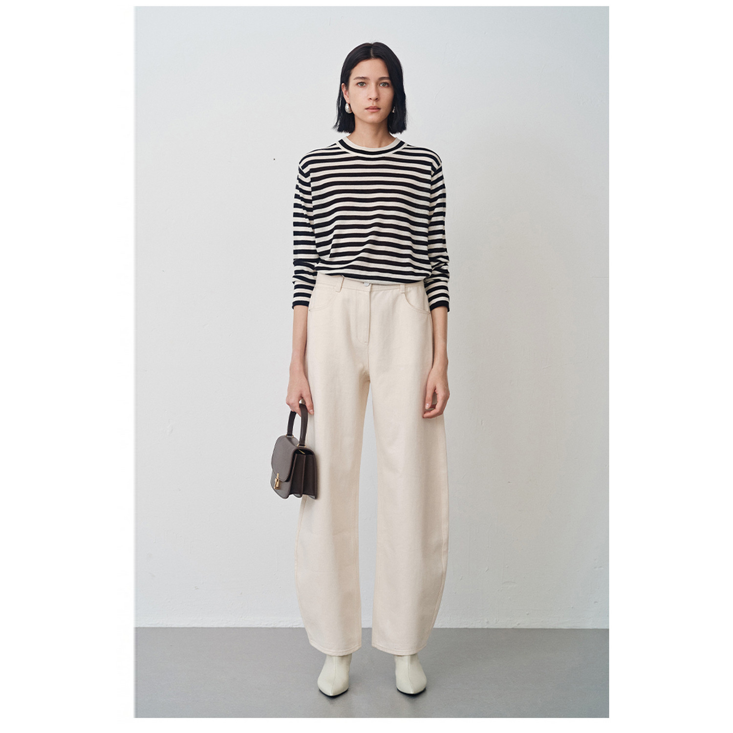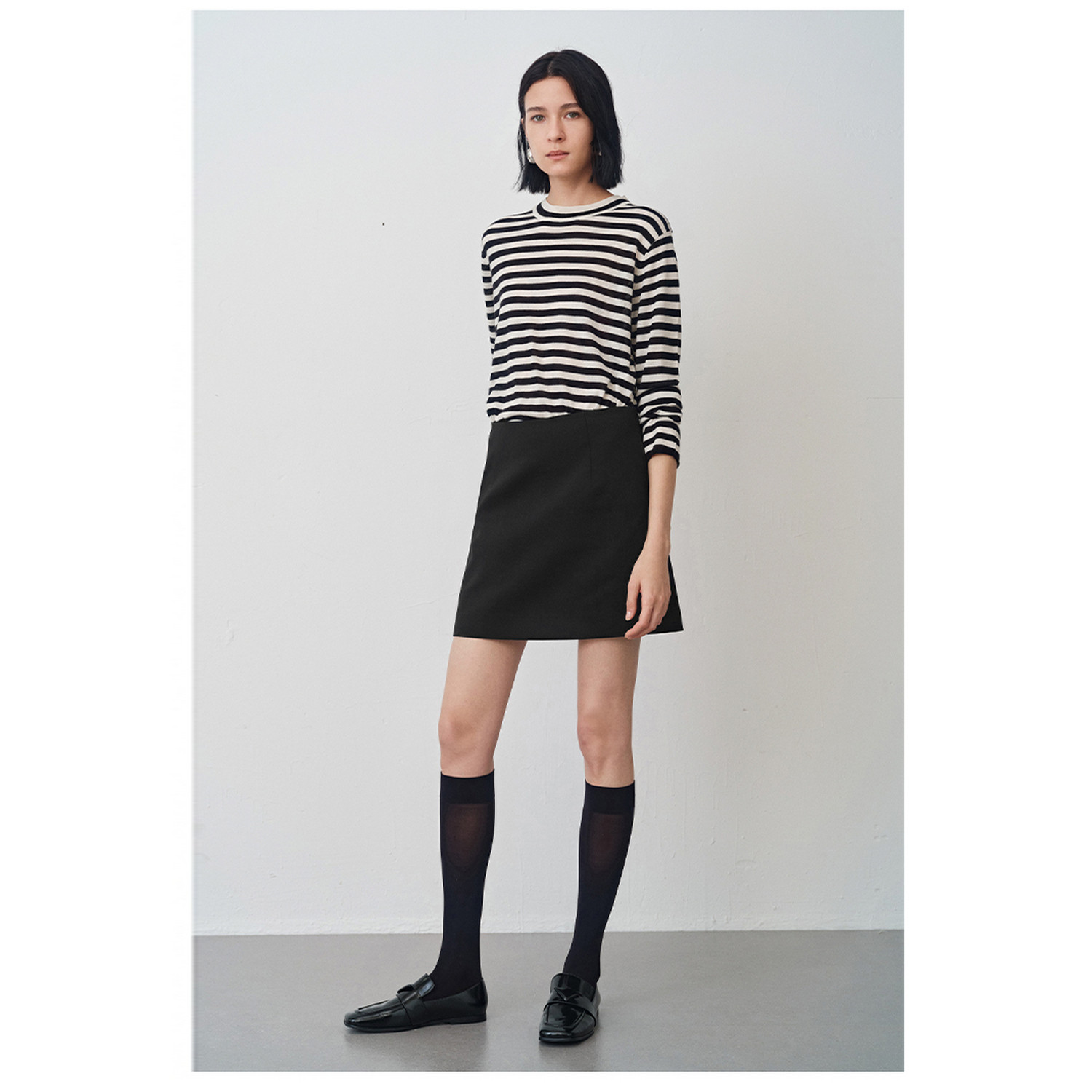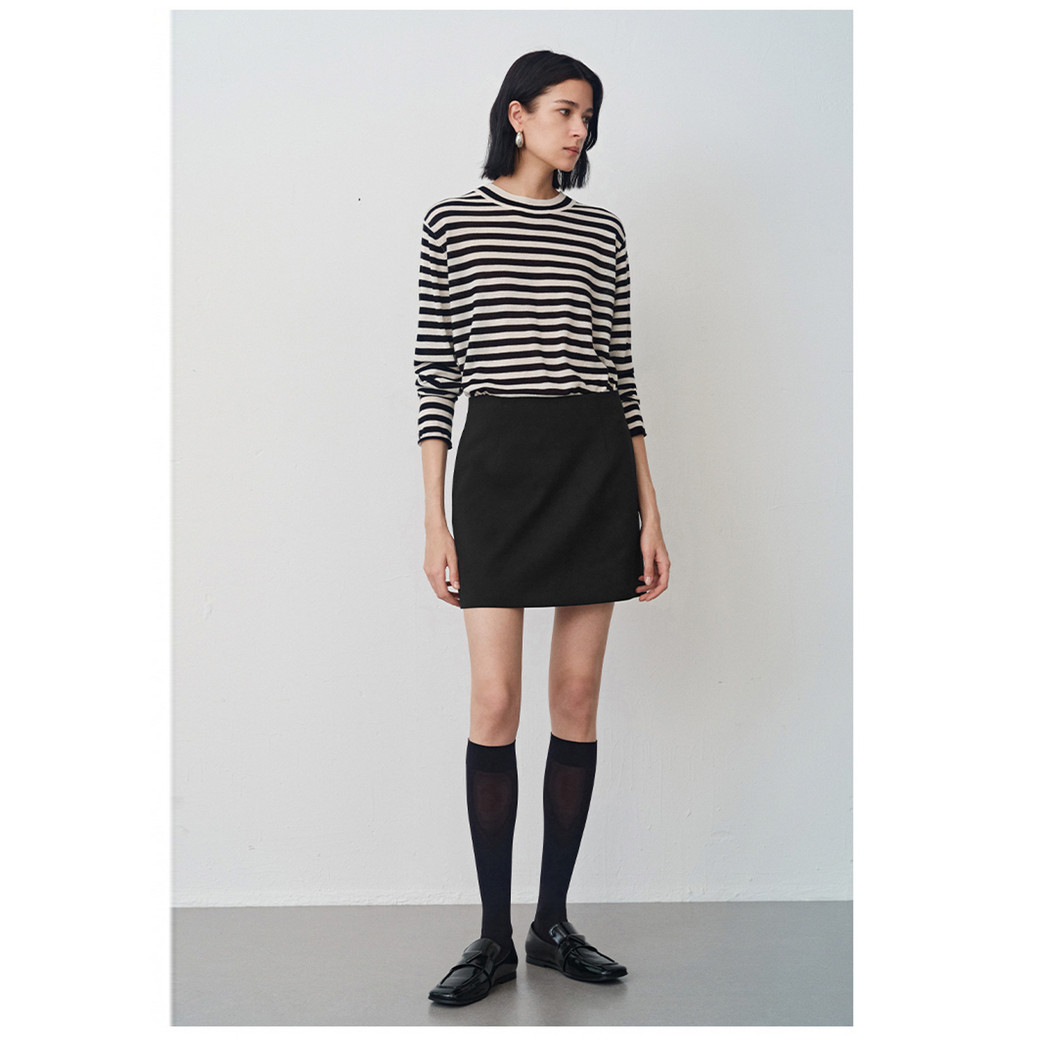 MISSCOCOON可可尼C3系列百搭轻柔真丝羊绒圆领条纹长袖T恤短袖女