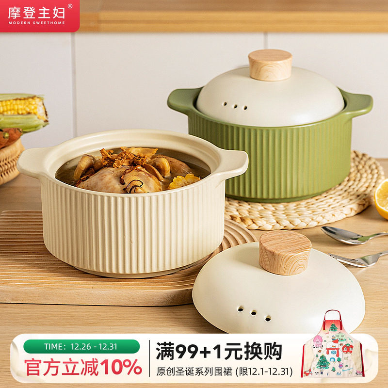 摩登主妇砂锅煲耐高温干烧不裂煲汤锅家用燃气灶专用陶瓷沙锅炖锅