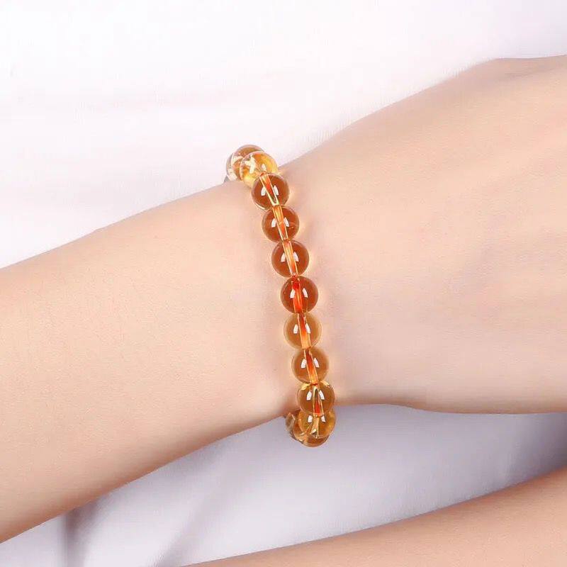 爆款平替玻璃仿黄水晶手串招财水晶男女款手链简约百搭冰透珠串