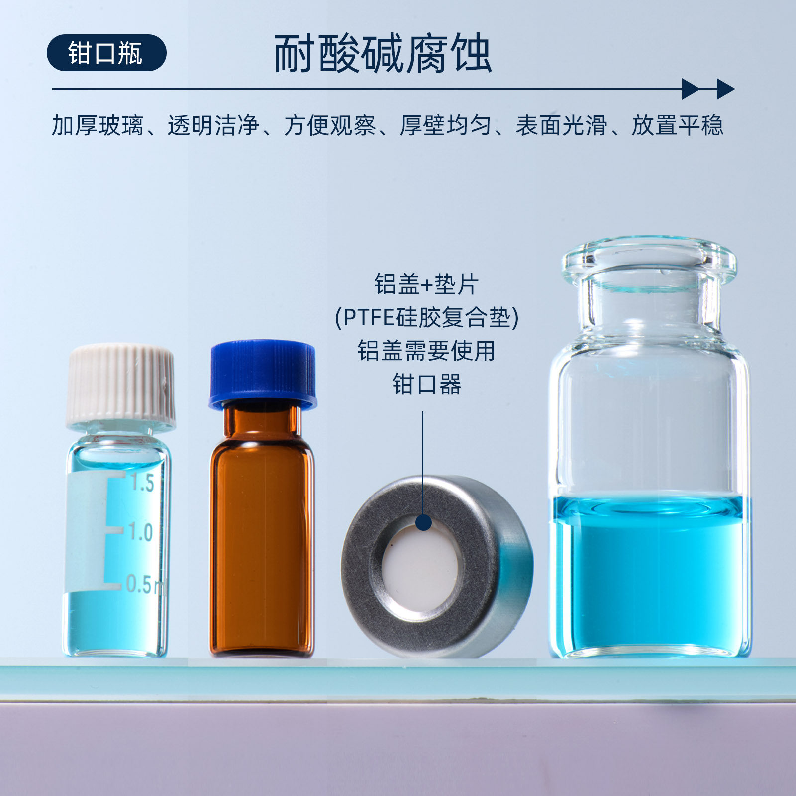 三爱思100只2-50mL小样品瓶白色透明棕色螺口密封小样瓶玻璃试剂整盒漂流取样瓶架实验室耗材进样顶空钳口瓶
