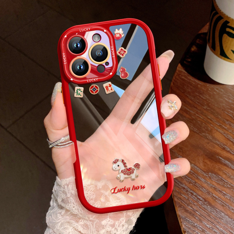马年限定款适用iPhone17手机壳苹果16promax透明15pro保护套17AIR生肖马14时尚女13pro卡通12过年红色带挂绳