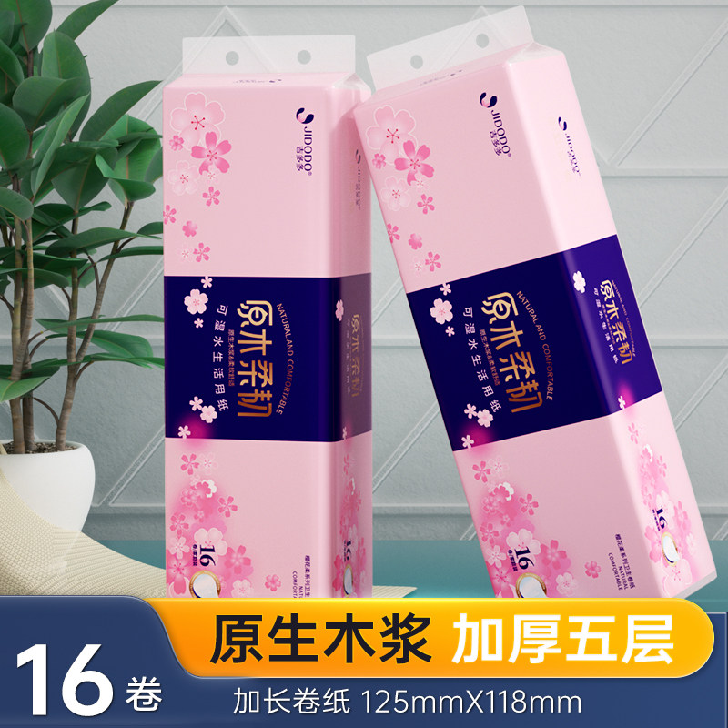 吉多多卫生纸卷纸家用实惠装整箱16卷5层加厚厕纸无芯卷筒纸手纸