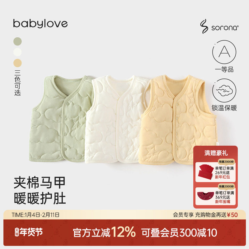 babylove婴儿马甲夹棉秋冬外穿保暖背心纯色百搭宝宝马夹加厚坎肩