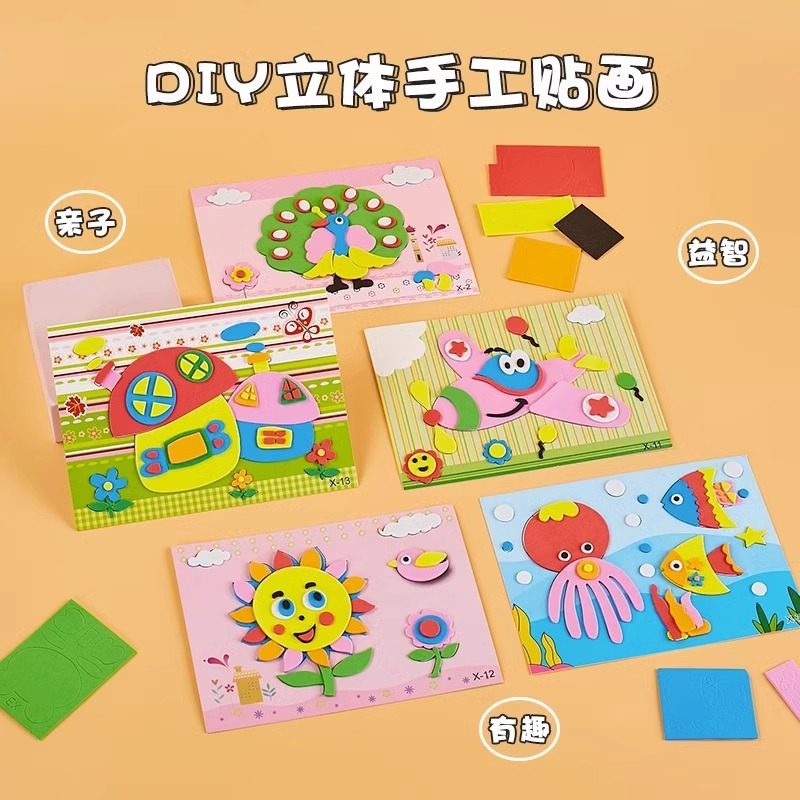 儿童3d立体手工贴纸玩具diy粘贴画女宝宝卡通益智eva贴贴画幼儿园