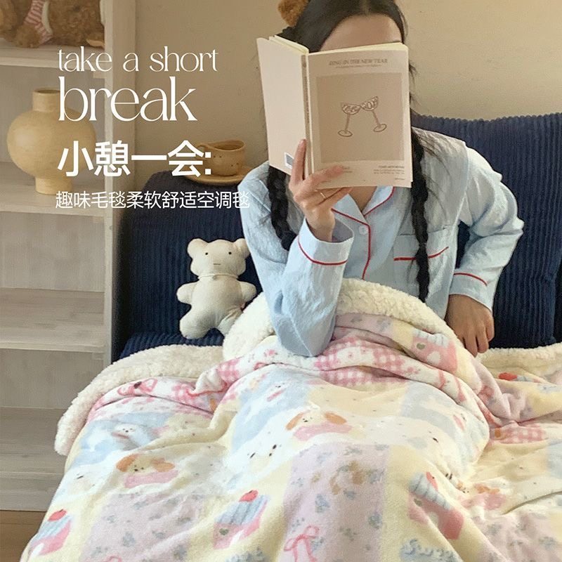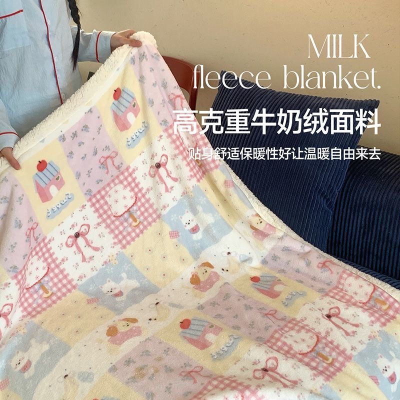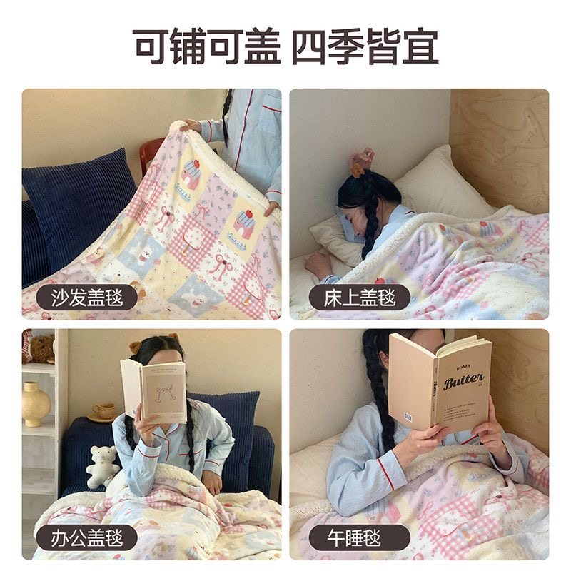 卡通可爱加厚羊羔绒毛毯牛奶绒多功能披肩毯午睡盖腿便携空调盖毯