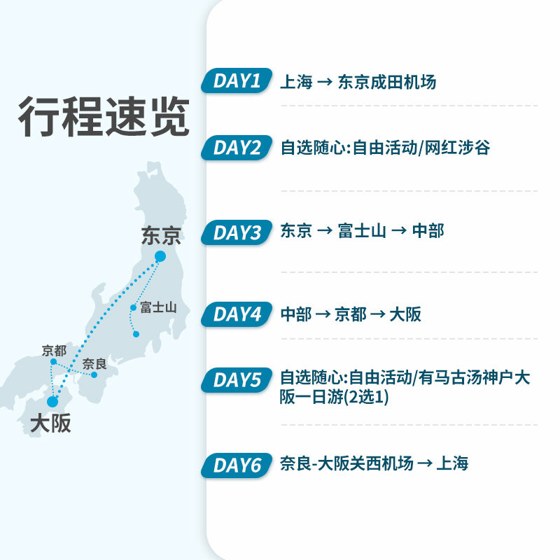 【团签】日本旅游6-8天跟团游 大阪+京都奈良+东京富士山+北海道