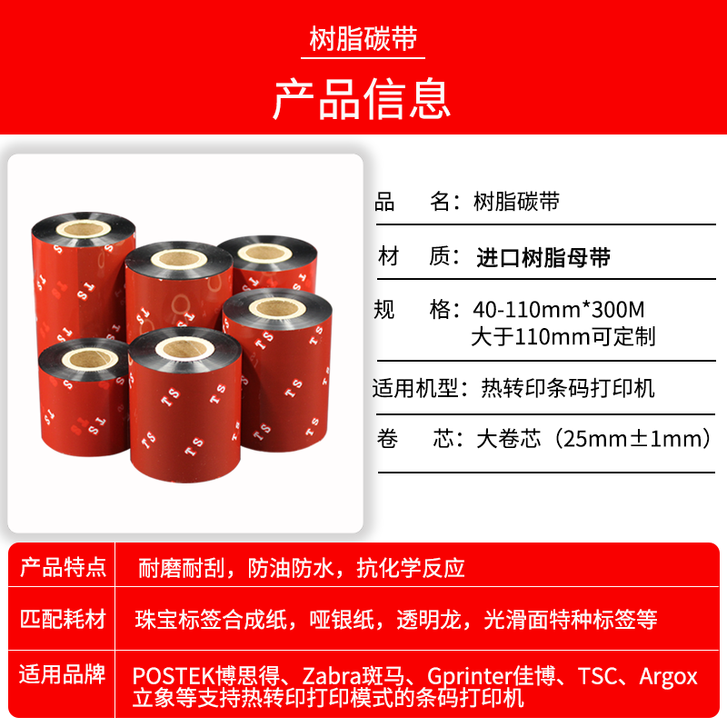 加强型树脂碳带全树脂碳带树脂基碳带条码机110mm*300m不干胶打印机碳带铂金版色带