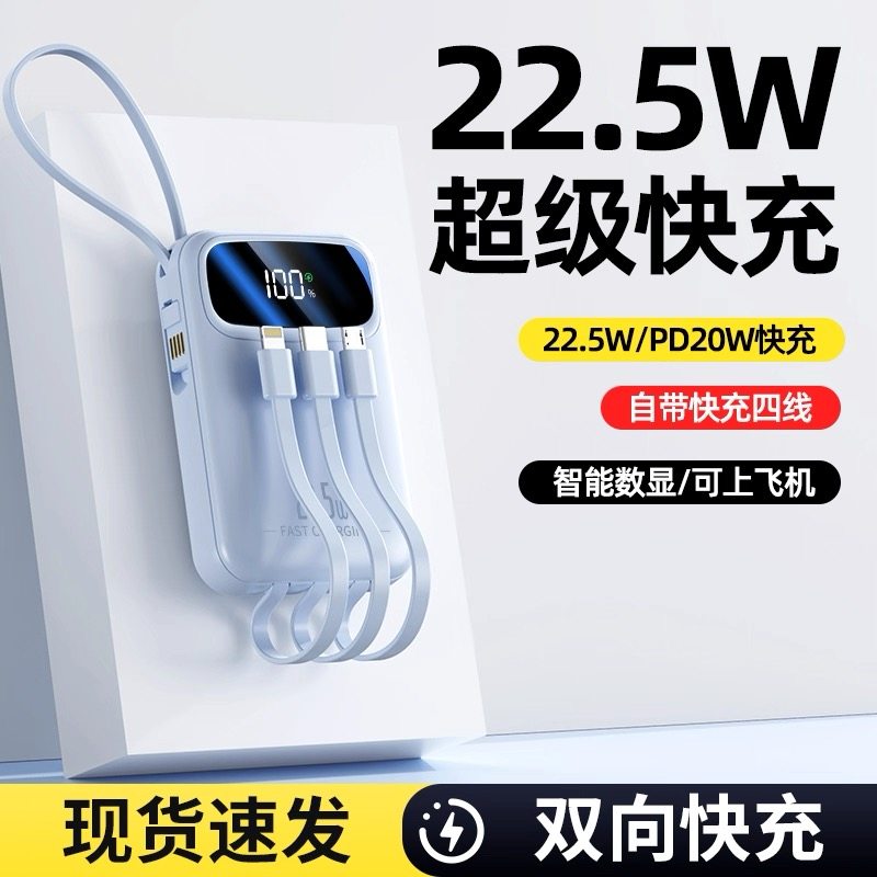 3C认证2025新款超级充电宝超大容量20000毫安自带线正品快充迷你移动电源适用华为苹果手机专用超薄小巧便携