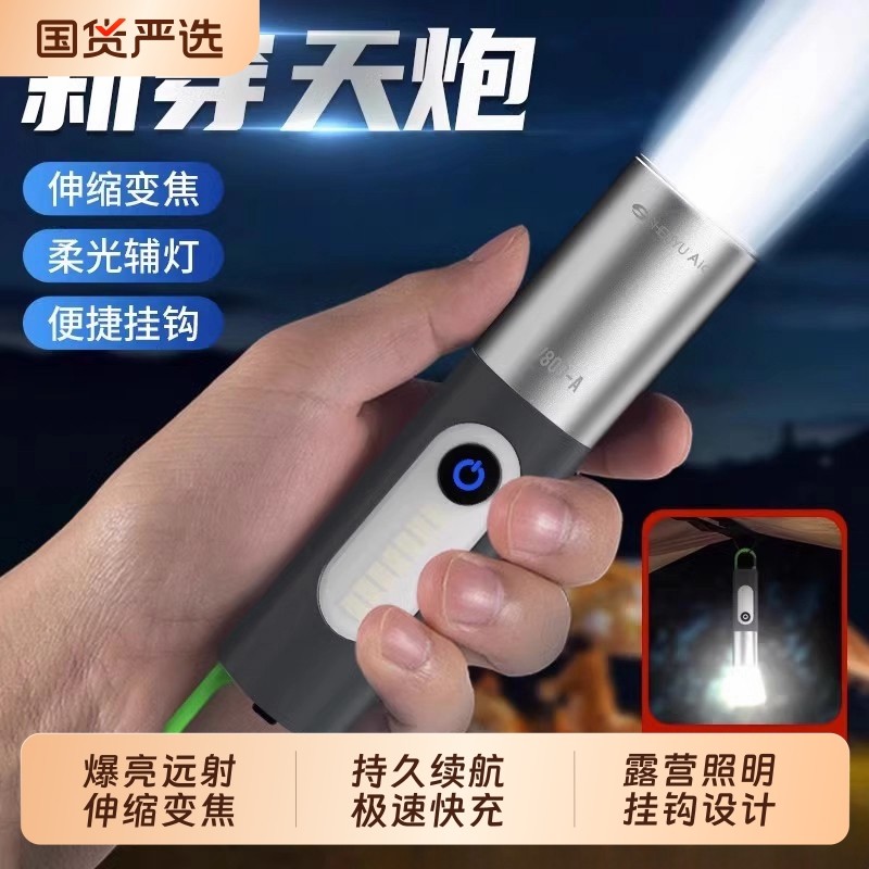 硕森强光手电筒迷你超亮户外家用变焦可充电远射小型便携战术电池
