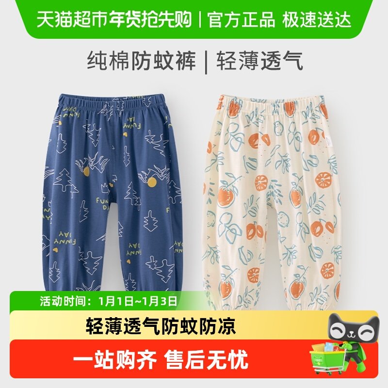 婴蓓依儿童防蚊裤男女童宝宝裤子a类纯棉夏季薄款可开档2025新款