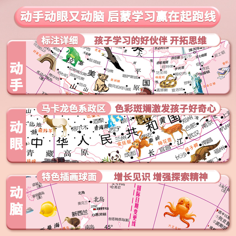 晨光双子座马卡龙儿童启蒙魔幻地球仪生日礼物卡通插画家居摆件玩具六一礼物小学生地理地图送礼