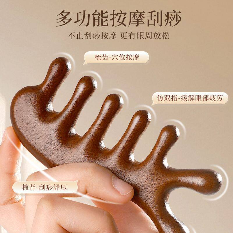 大嘴猴按摩梳经络头部头疗海豚眼部疏通头皮檀木梳束发带穴位刮痧