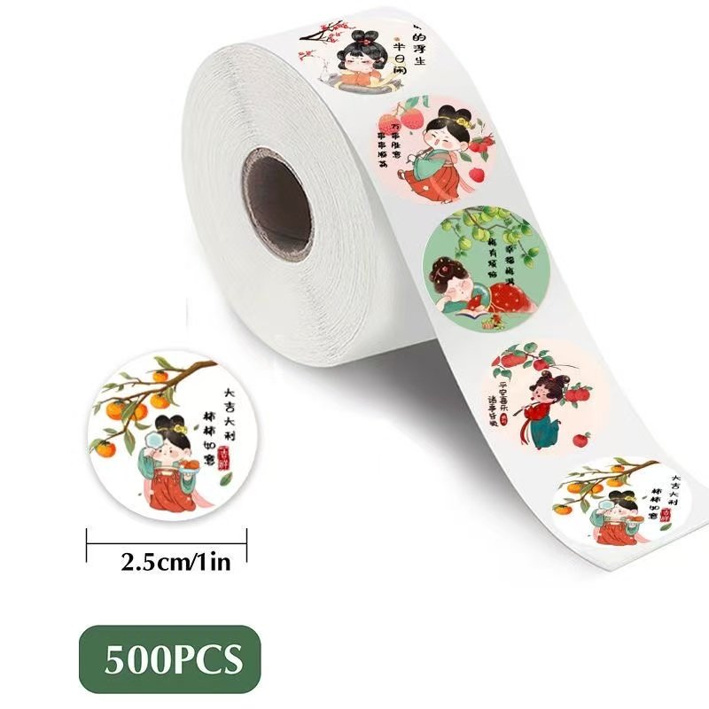 可爱卡通古风女孩卷卷贴纸圆形贴纸儿童奖励手账装饰礼物封口贴