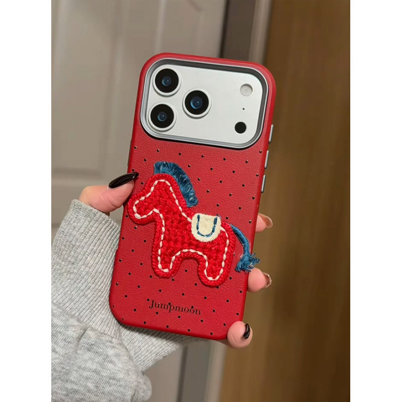 黑波点蓝头发红马适用苹果17promax手机壳新款iPhone16promax日韩15promax保护套12可爱13防摔14皮纹金属框11