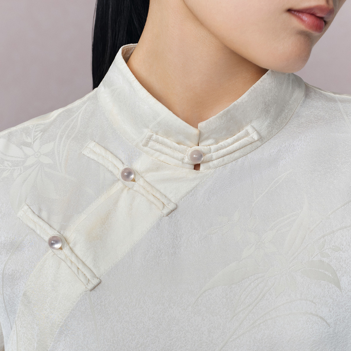 naivee纳薇25冬新款新中式立领羊毛人丝静奢提花衬衫百搭可叠穿
