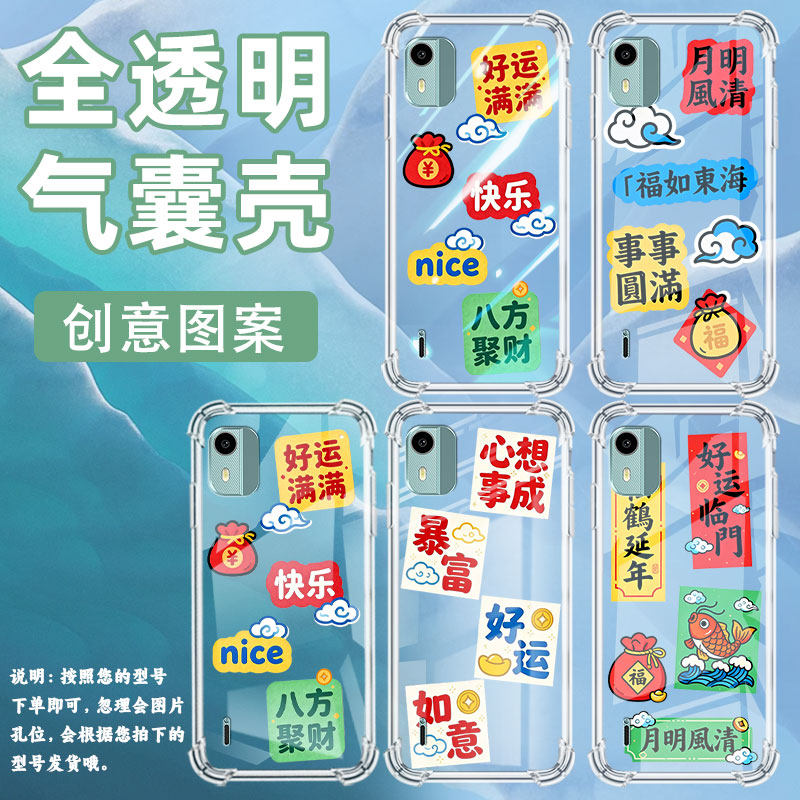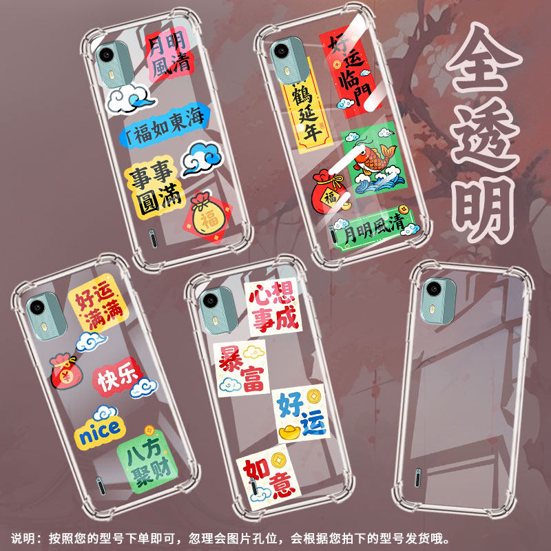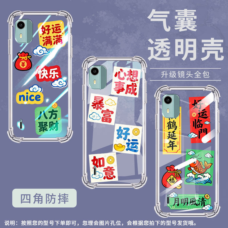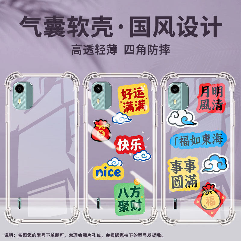 适用诺基亚C12气囊手机壳诺基亚C01+四角防摔月明风清NokiaC12+手机壳诺基亚C12Pro中国风TA-1383保护套