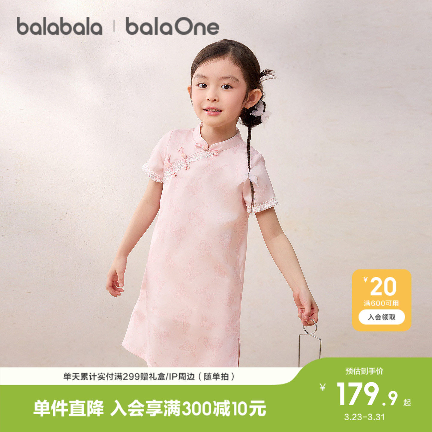 巴拉巴拉童装女童裙子儿童连衣裙2026夏新款新中式旗袍裙国风印花