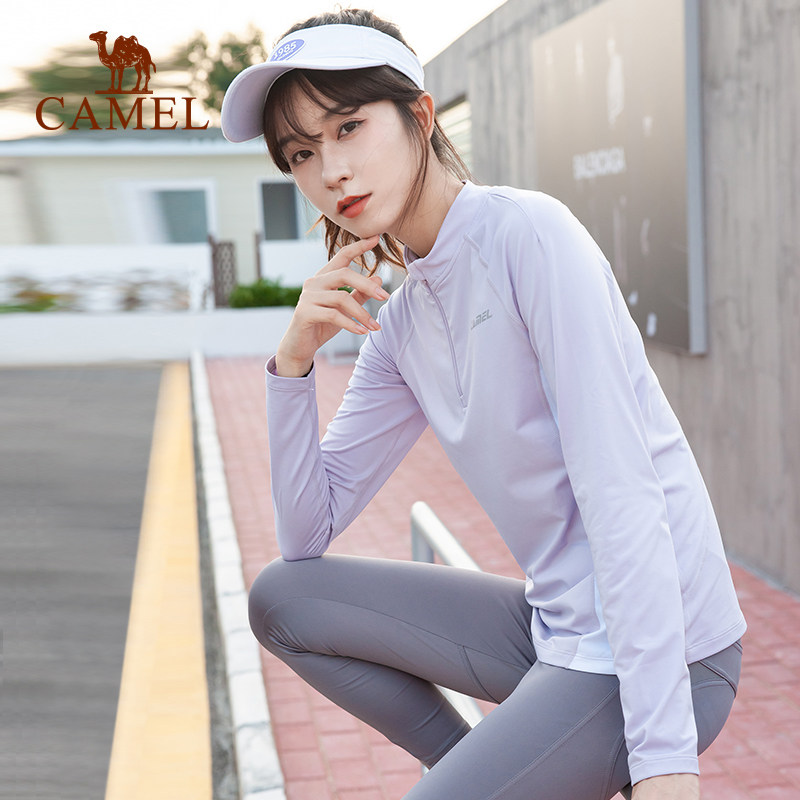骆驼运动速干上衣女户外立领健身专业跑步健身瑜伽服显瘦长袖T恤