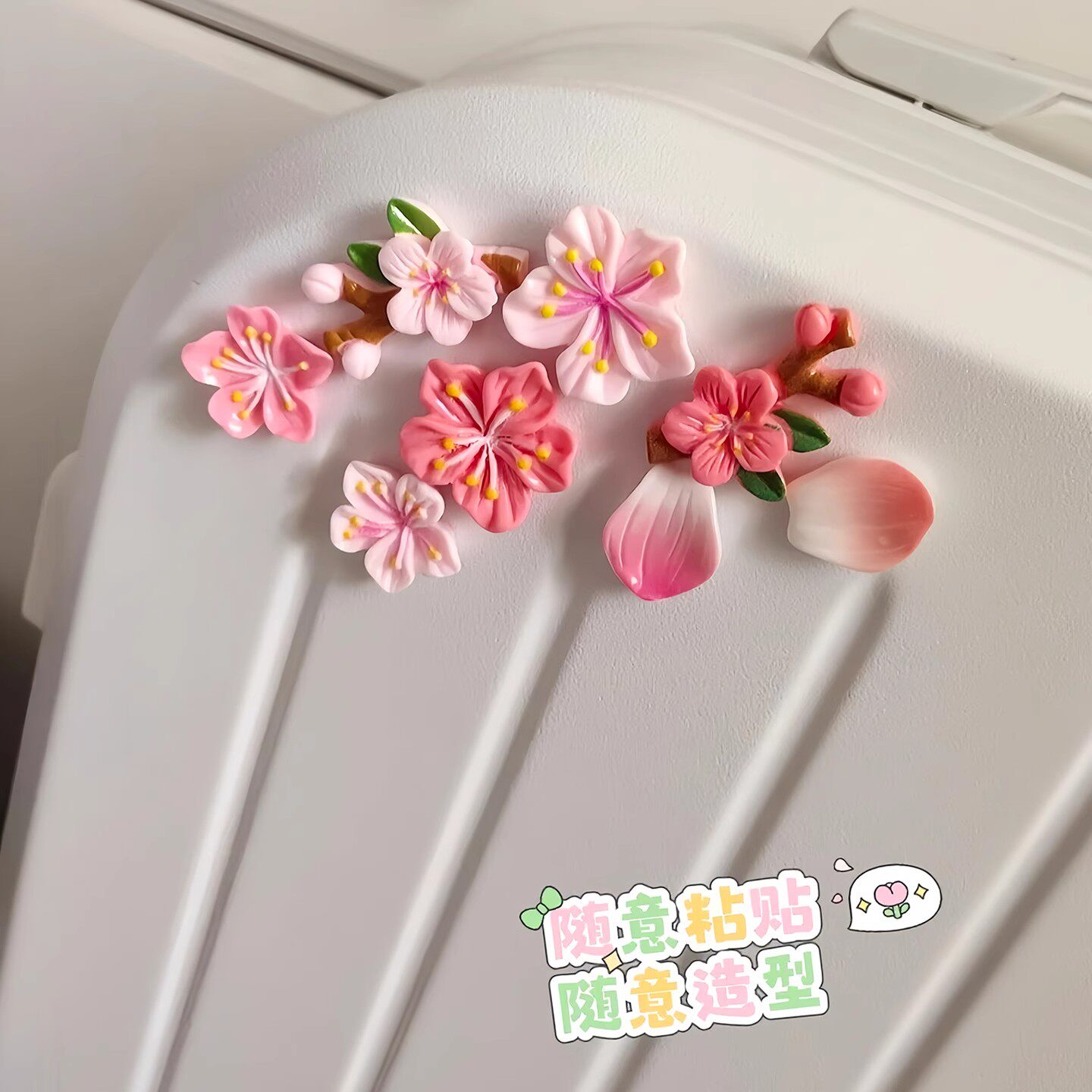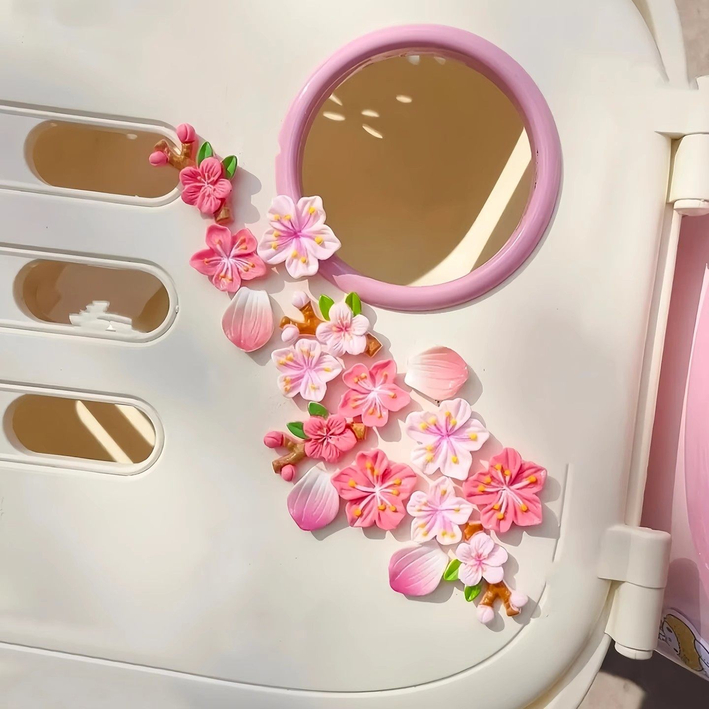 桃花无痕3d立体贴车内饰品摆件花朵车载中控屏幕摆饰电动车小装饰