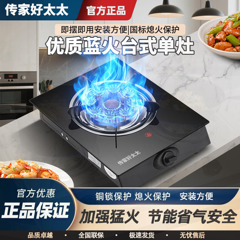 好太太煤气灶单灶家用台式液化气玻璃不锈钢节能猛火天然气燃气灶