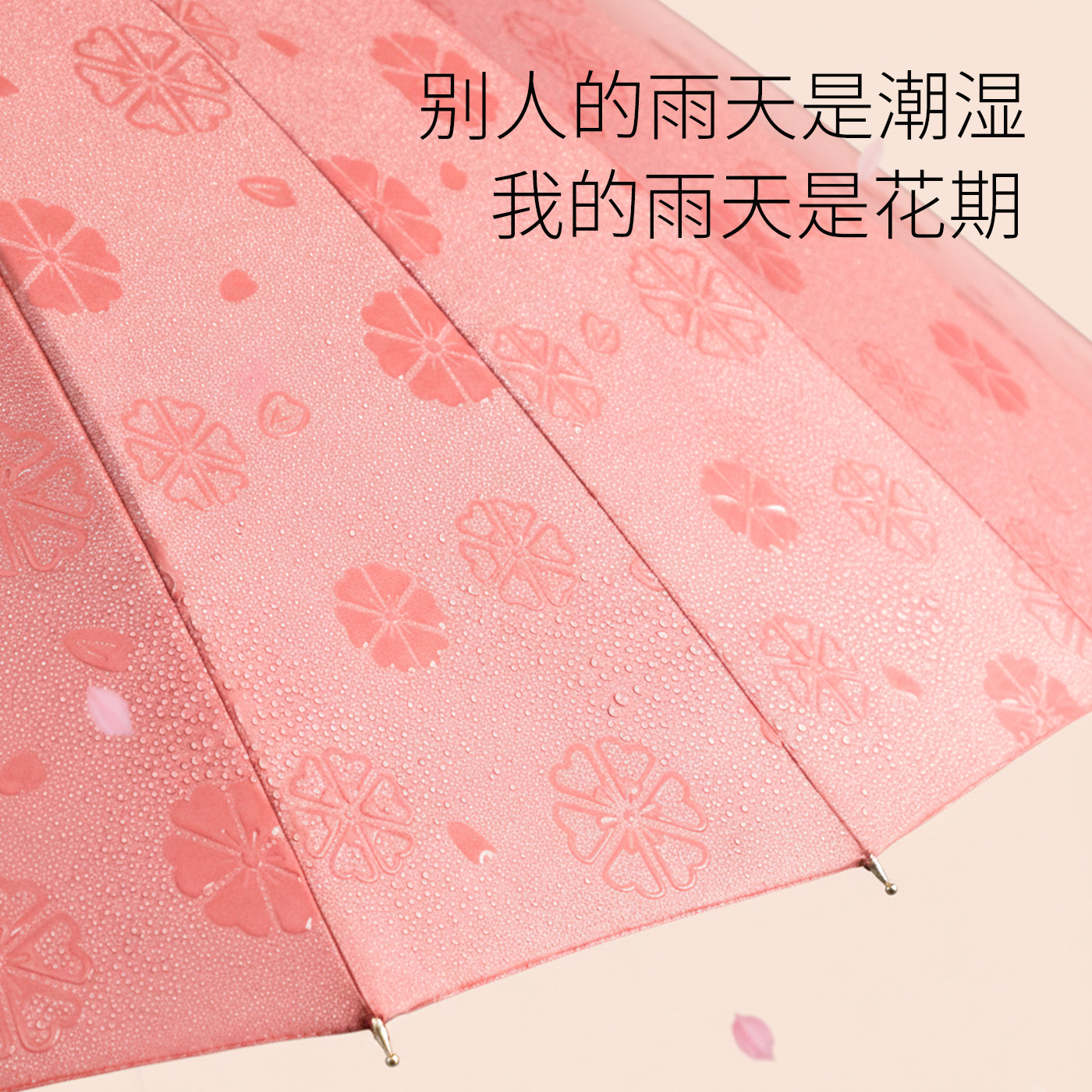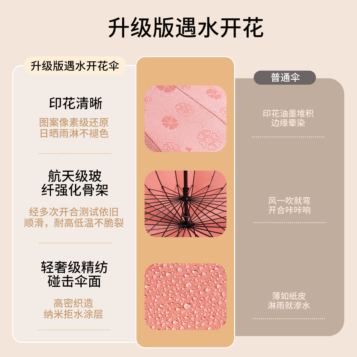 24骨遇水开花长柄雨伞女双人大号抗风结实女高颜值加固圆角开合