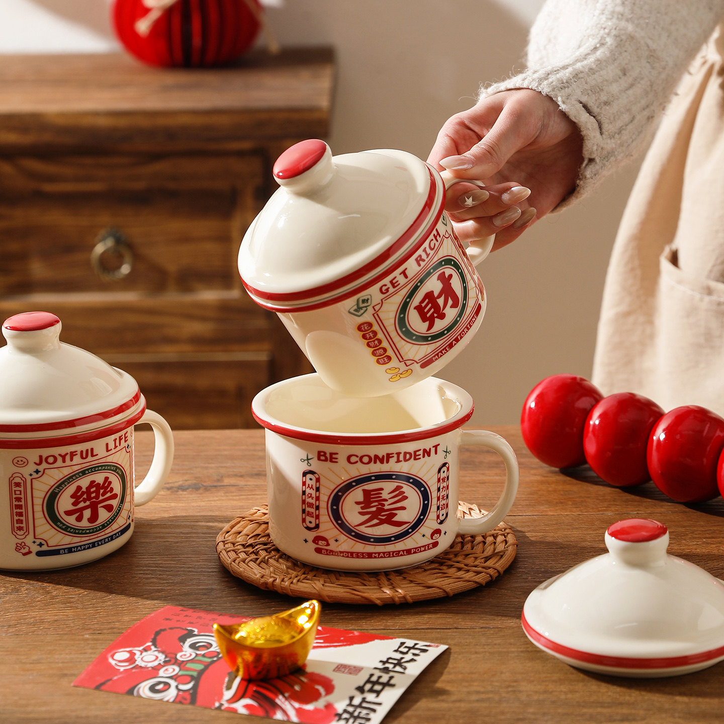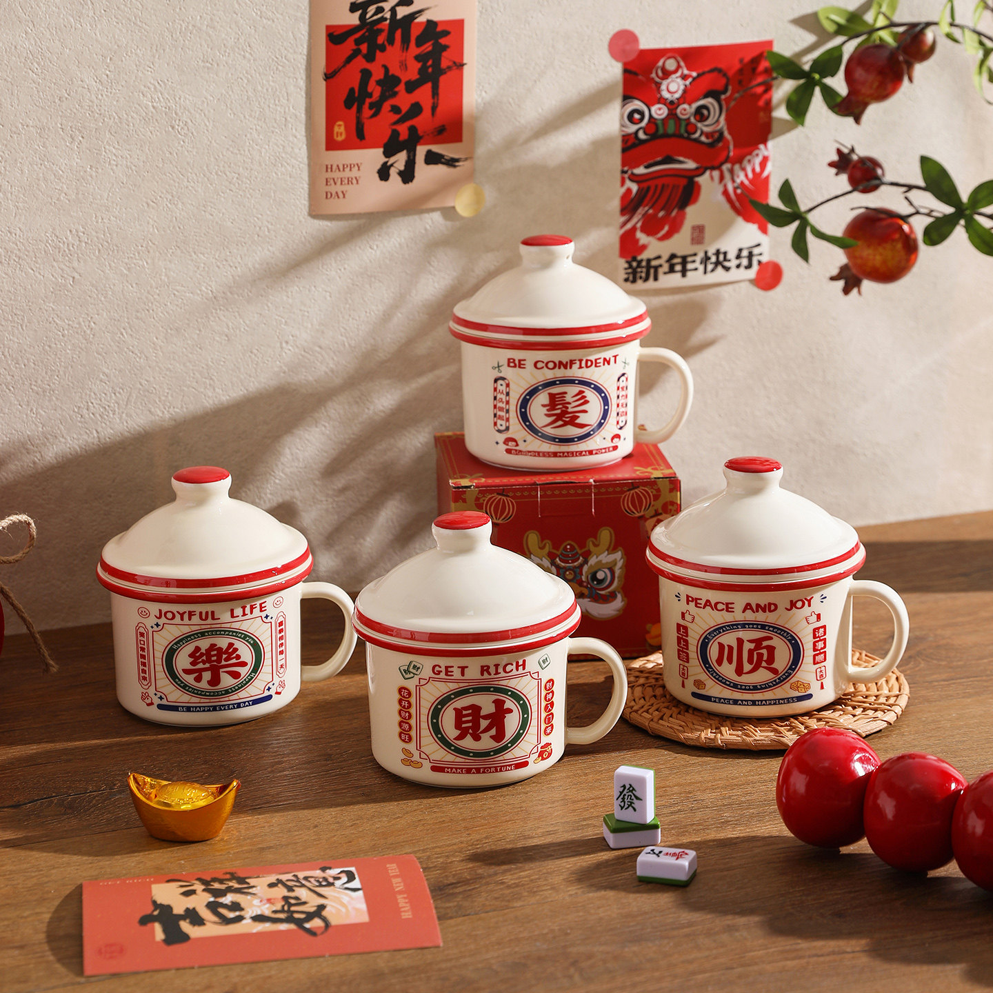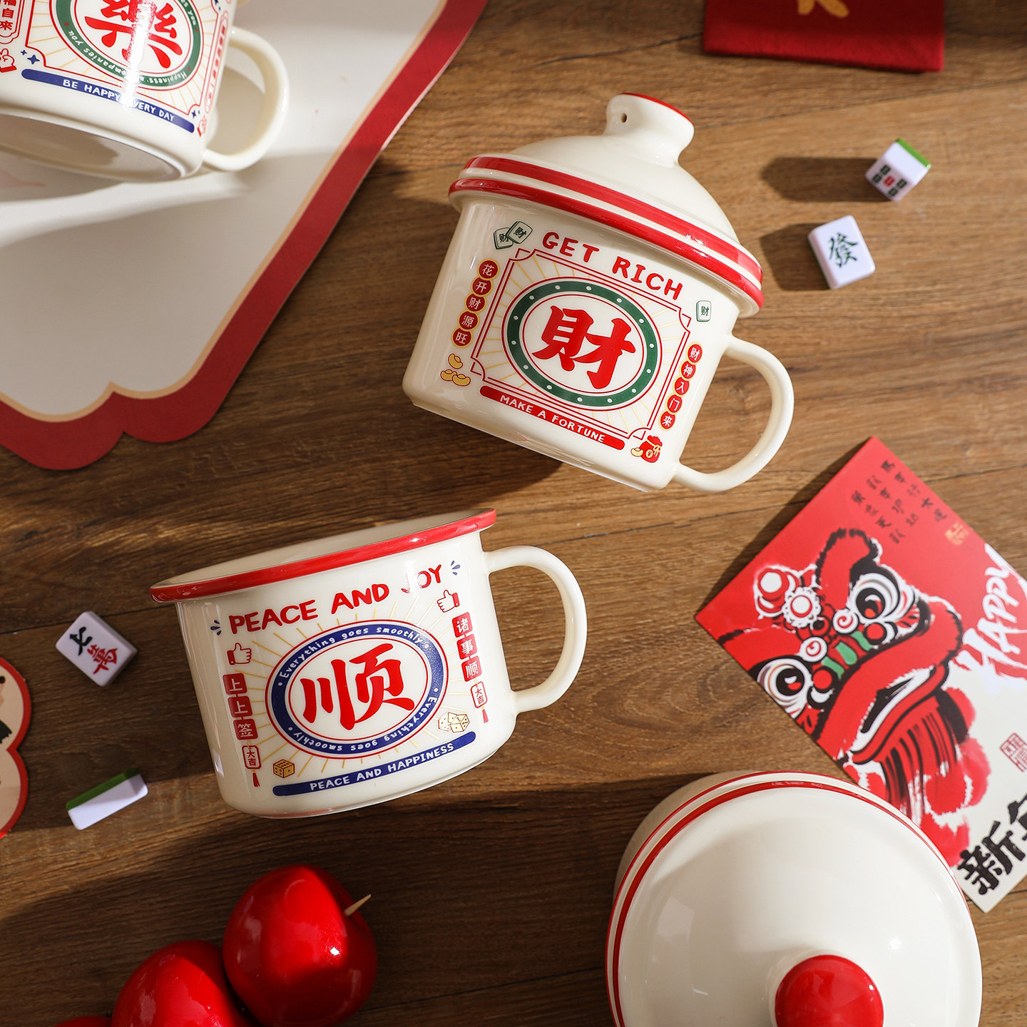 舍里新年陶瓷马克杯带盖创意咖啡杯家用办公室喝水杯实用礼品杯