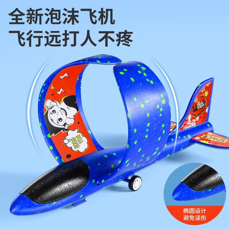 弹射泡沫飞机发射枪男孩男童户外运动手抛小孩儿童玩具发光小朋友