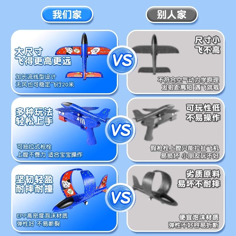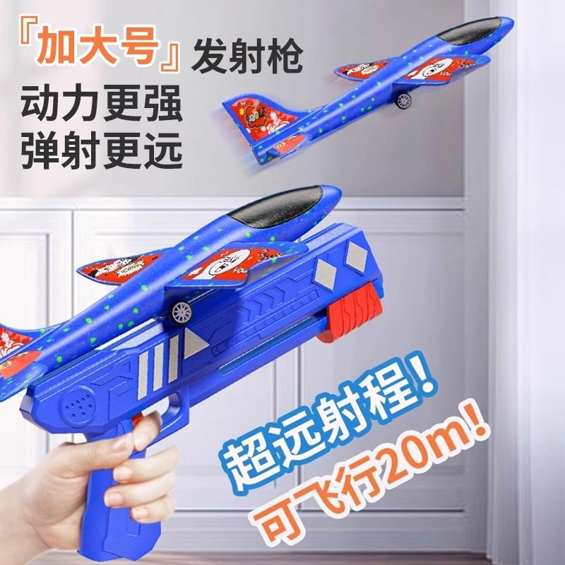 儿童弹射飞机枪软弹发射器泡沫模型手抛会飞天的户外玩具男孩手枪