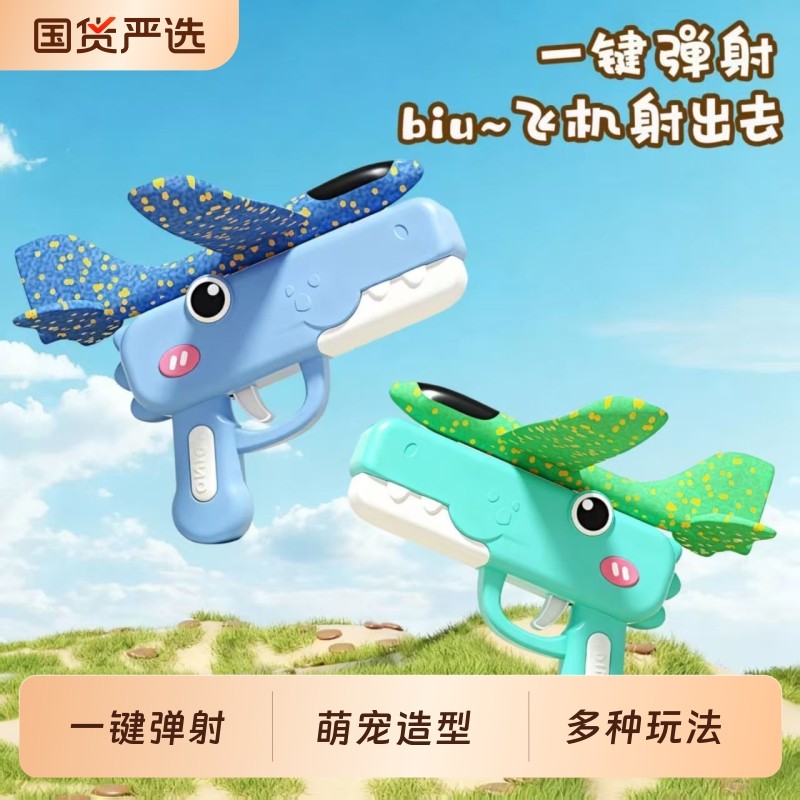 网红爆款弹射泡沫飞机手持发射枪手抛儿童飞天户外运动玩具小男孩