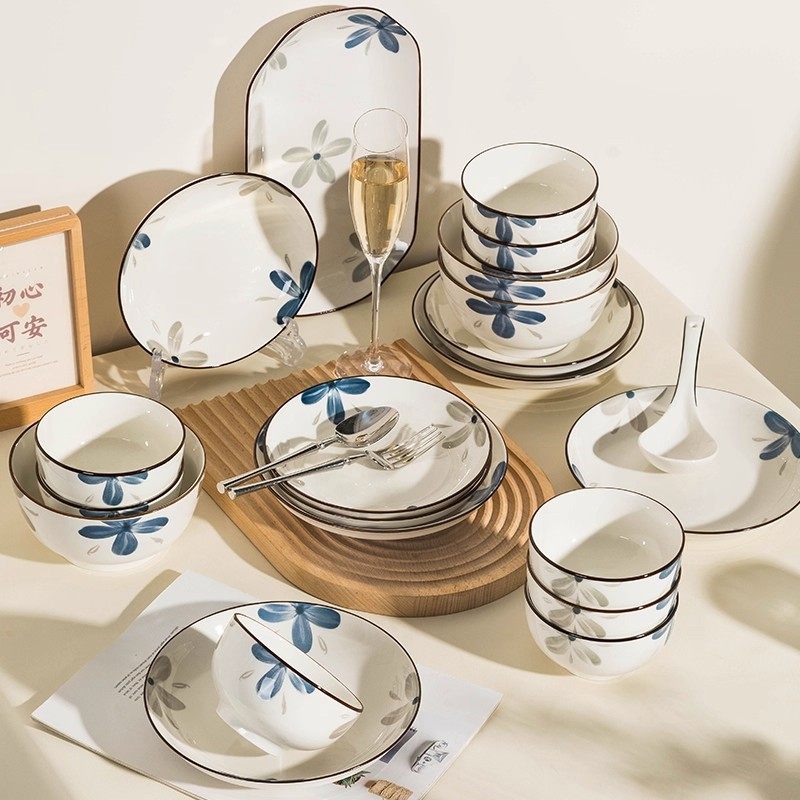 釉下彩陶瓷餐具套装家用2025新款碗碟盘子碗具日式乔迁新居碗盘筷