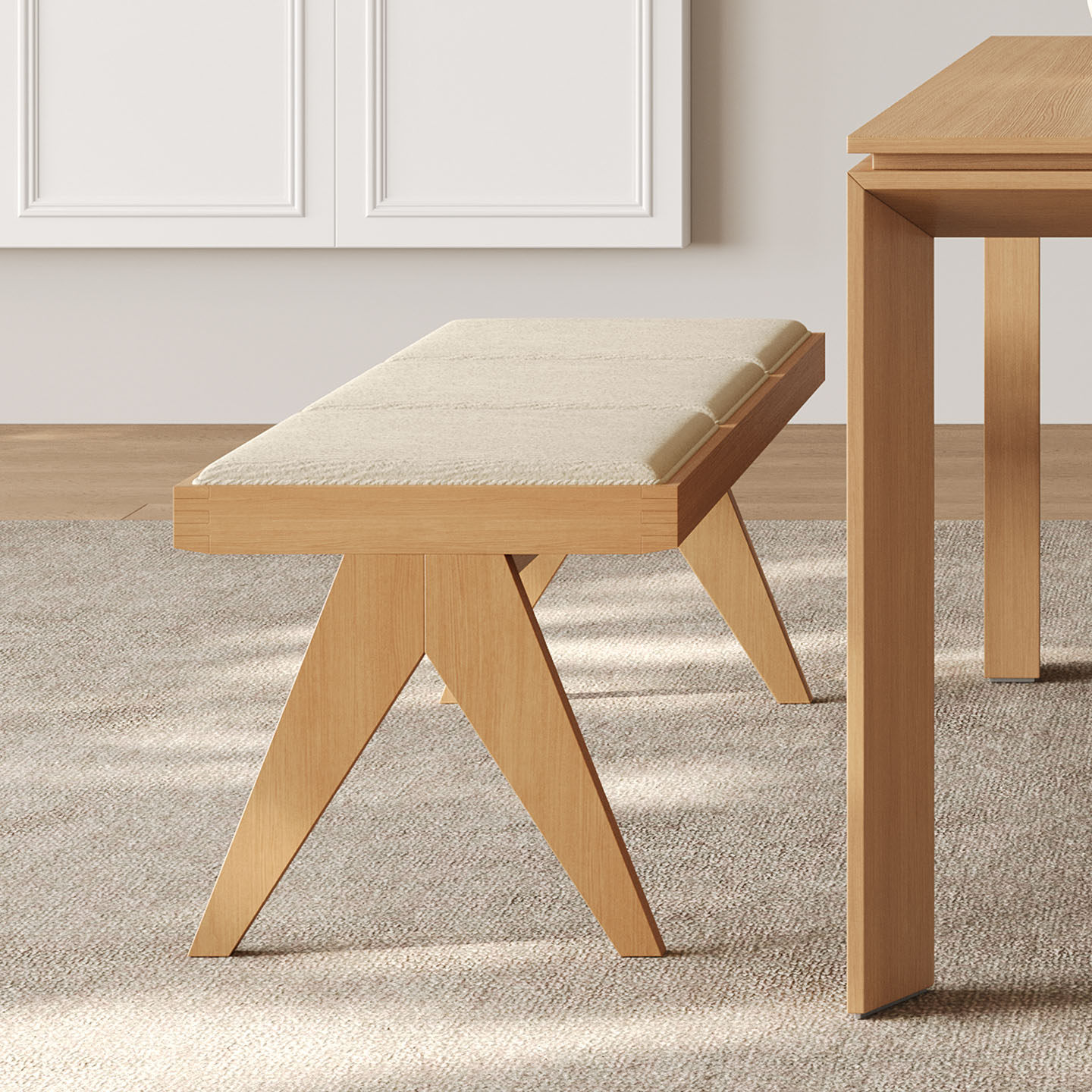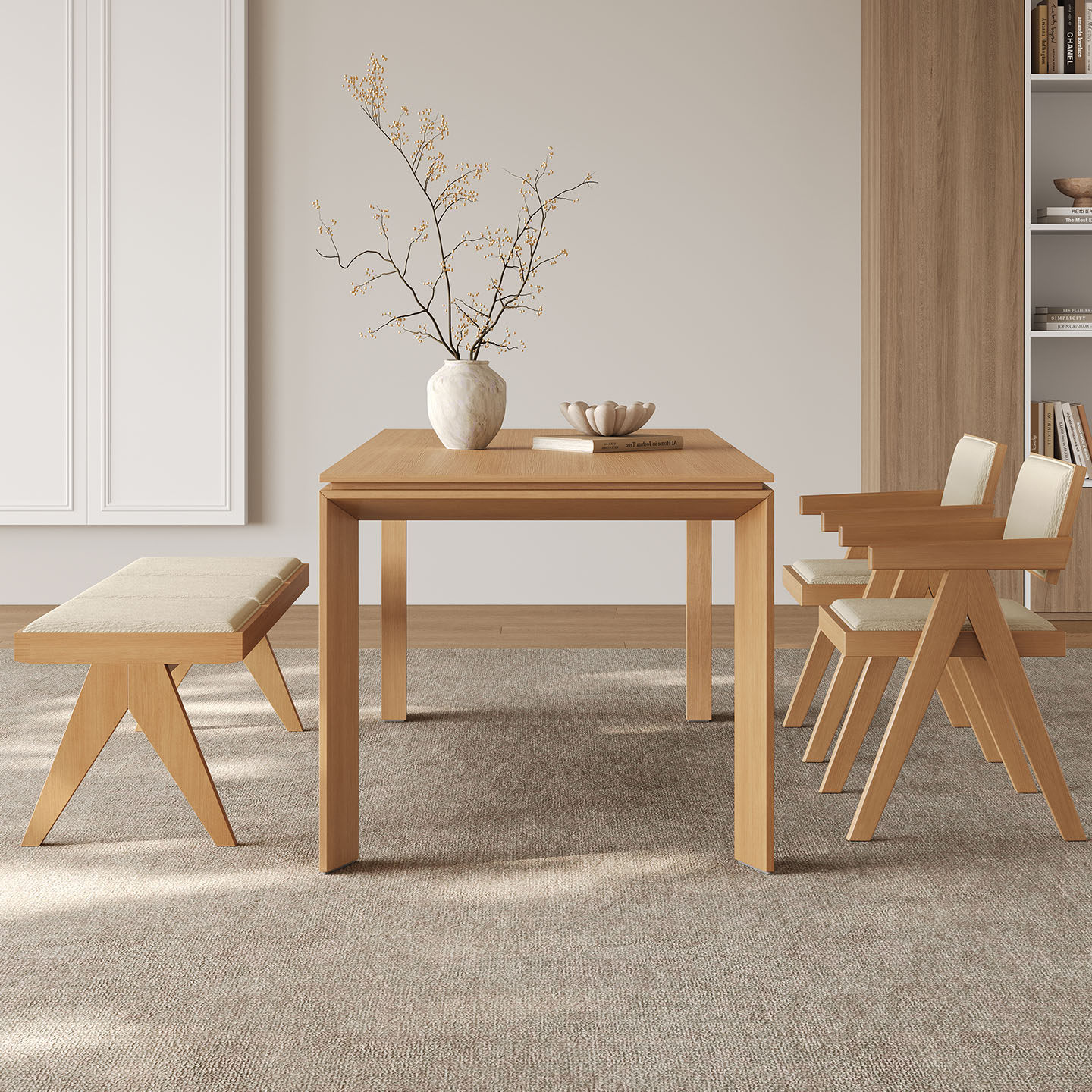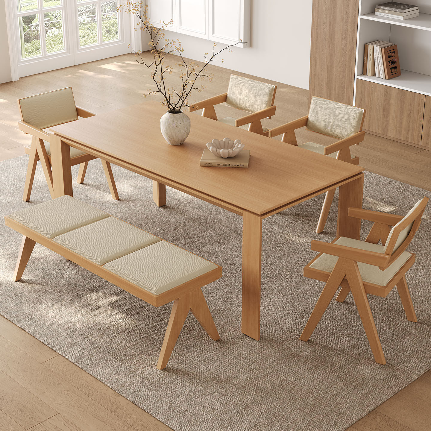 实木长凳家用小户型现代简约高端长椅2025新款奶油风原木休闲餐椅