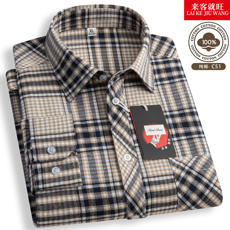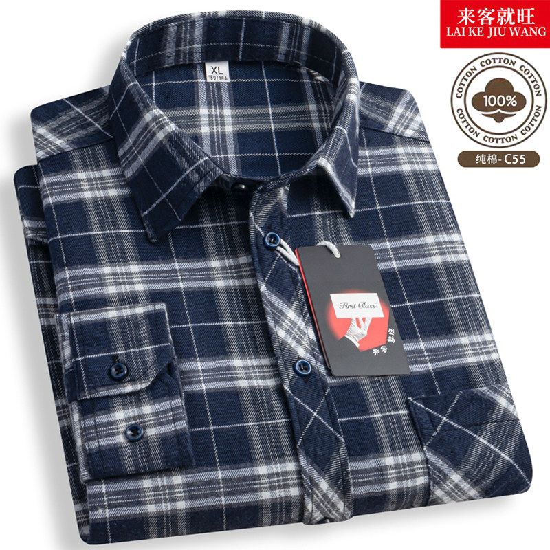 【清仓特价】纯棉100男士长袖衬衫全棉口袋格子衬衣商务休闲免烫