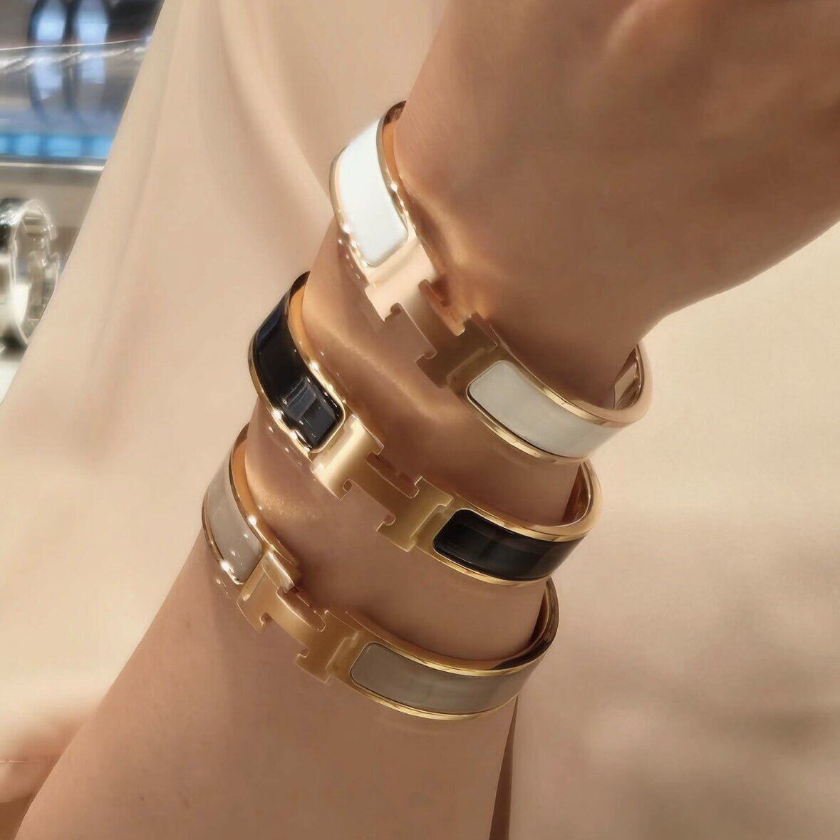 H扣H手镯小众设计气质优雅百搭时尚珐琅复古礼品女玫瑰金黄金