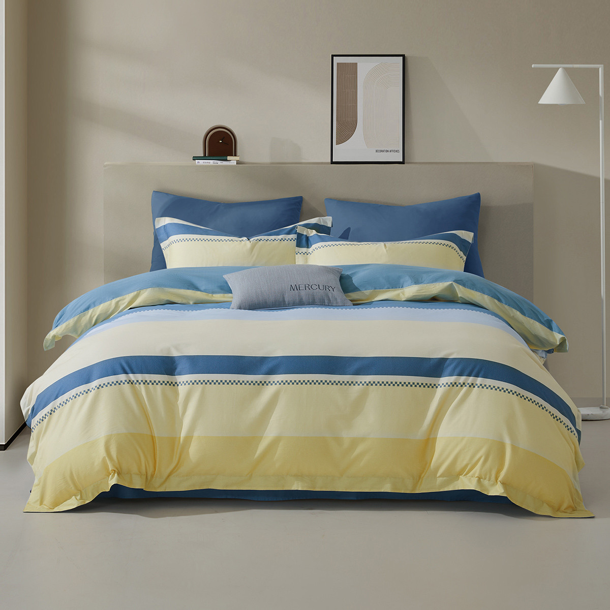 水星家纺全棉三/四件套纯棉套件春夏简约被套床单被子罩床品