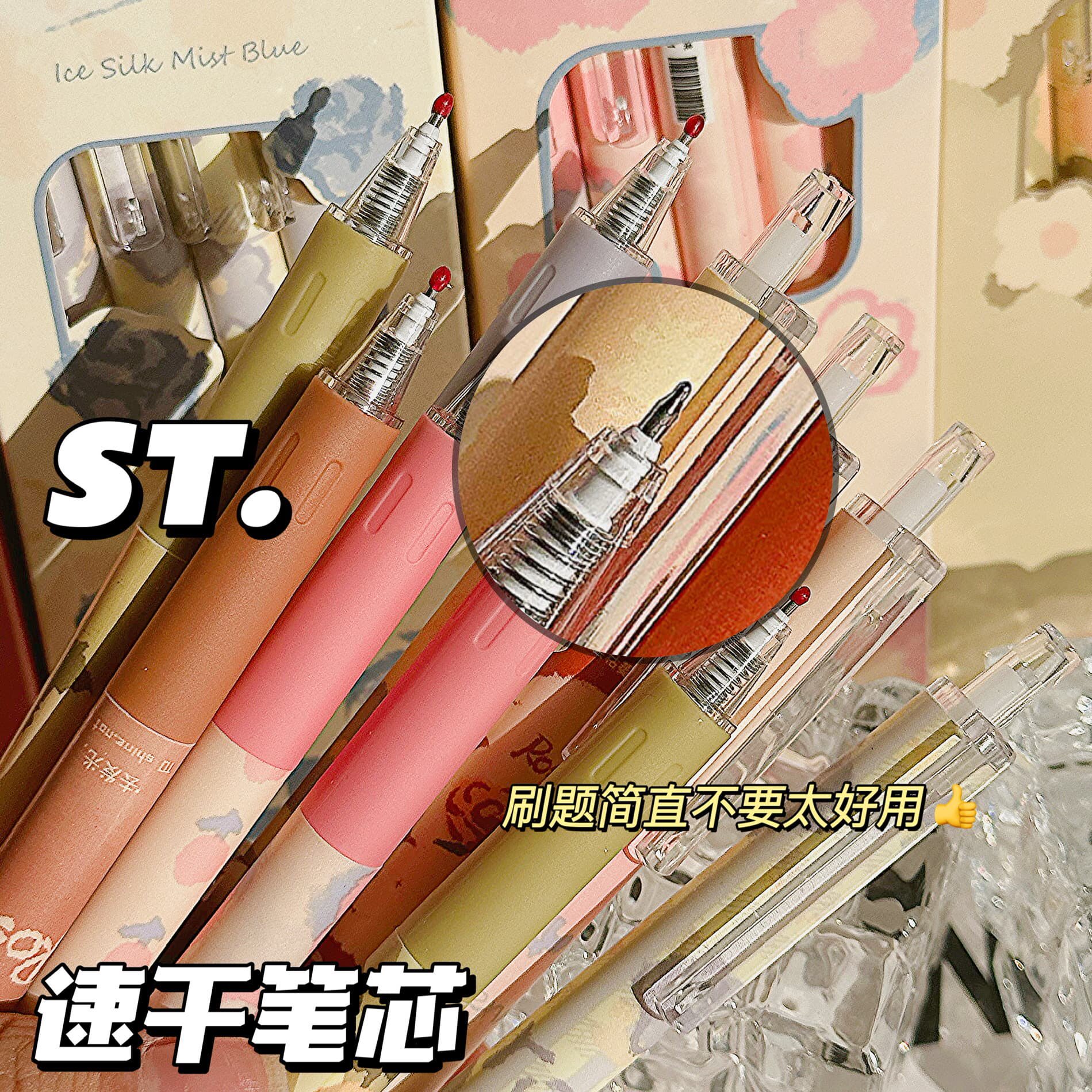 晴耕雨读刷题笔专用高颜值速干按动中性笔ins黑笔圆珠笔ST笔学生用考试笔顺滑0.5笔芯黑色水性签字笔水笔碳素