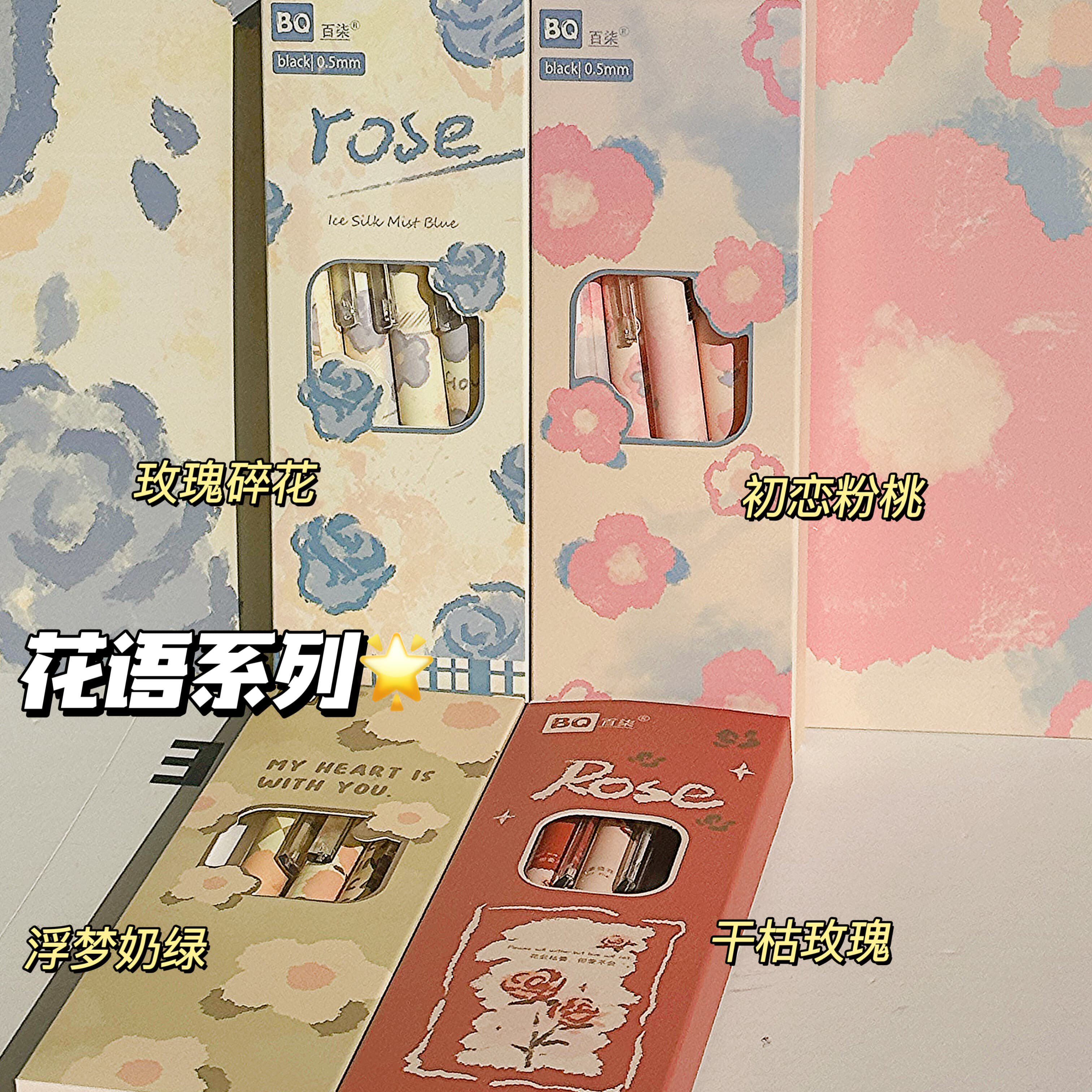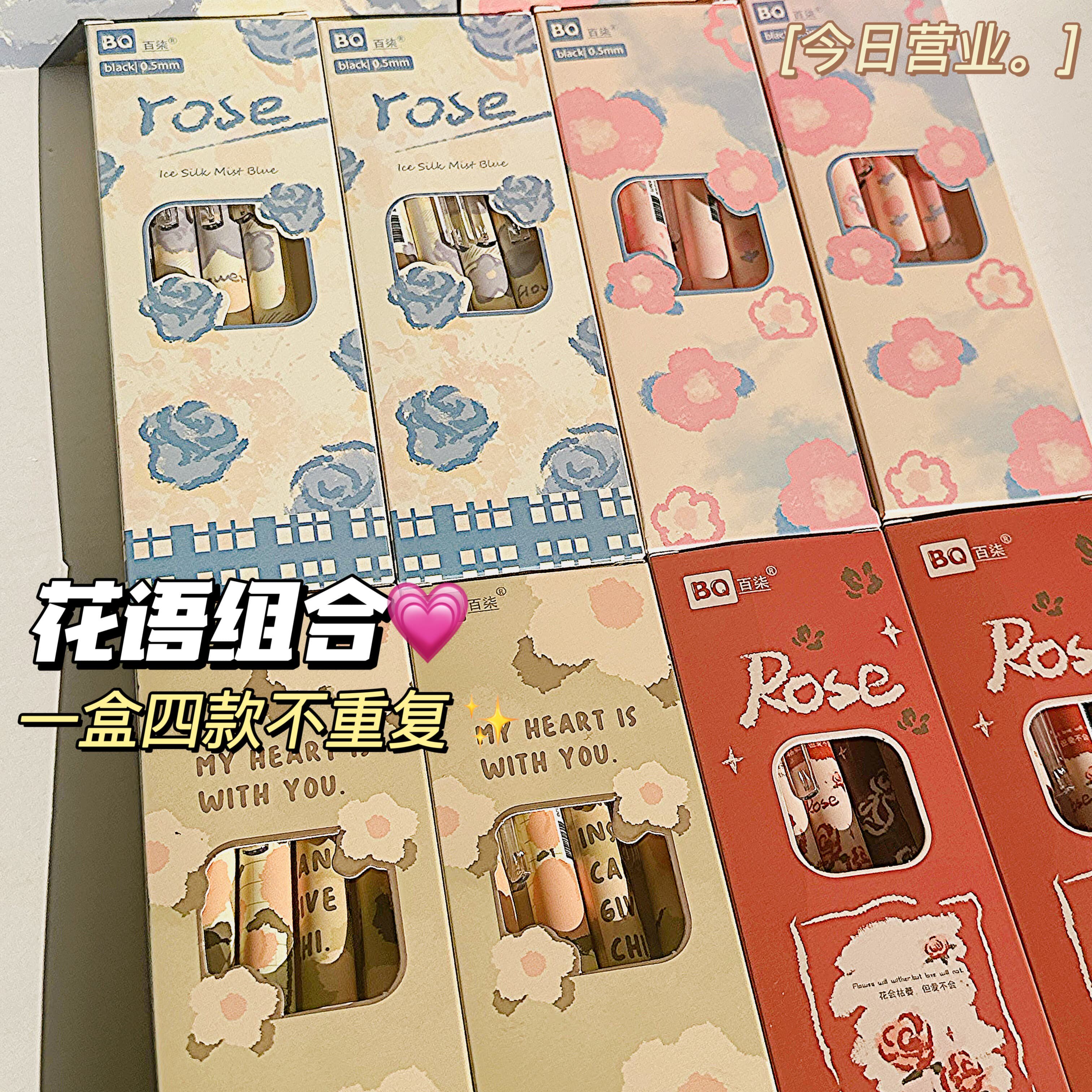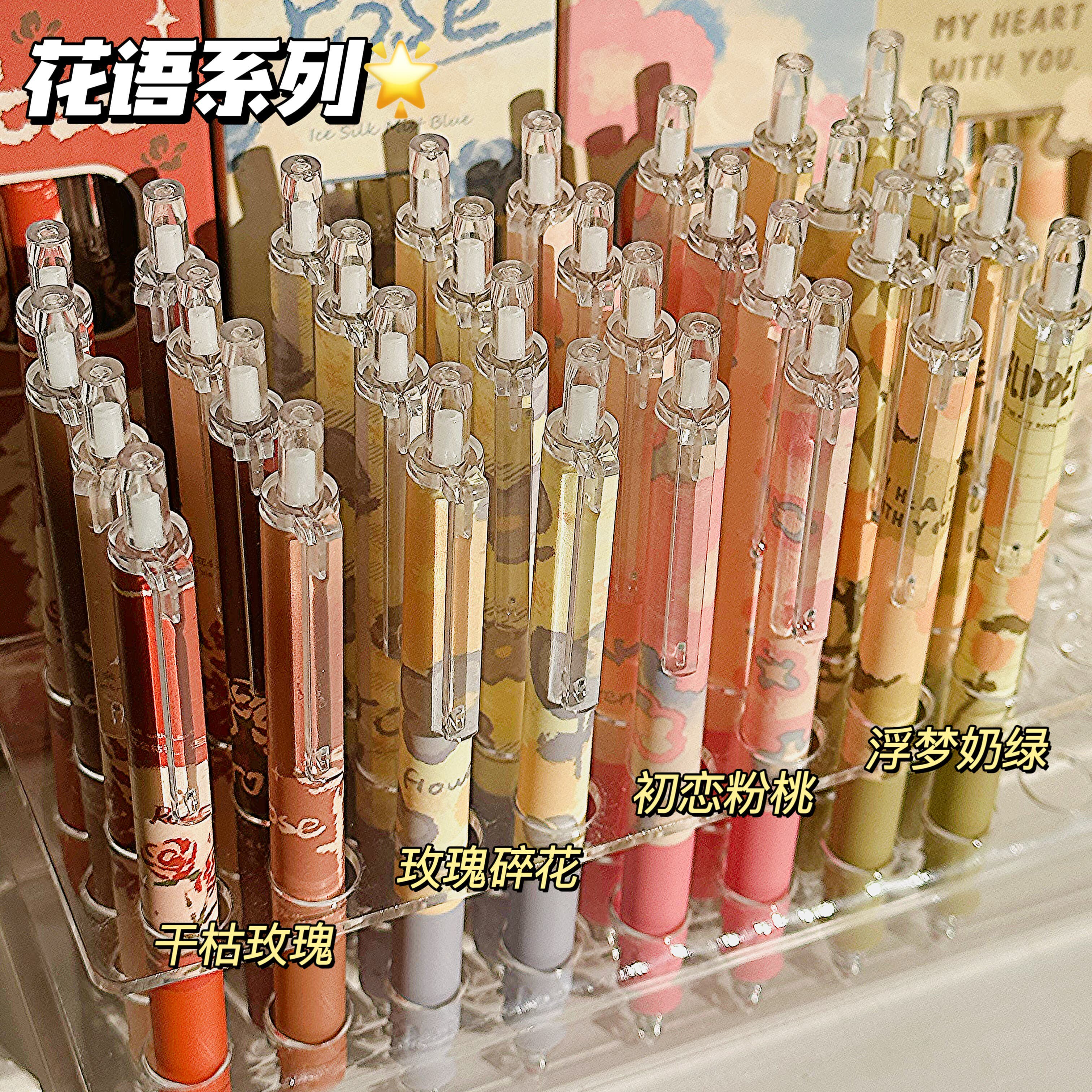 玫瑰初恋粉桃高颜值ins按动中性笔学生女考试速干刷题笔0.5mm黑笔