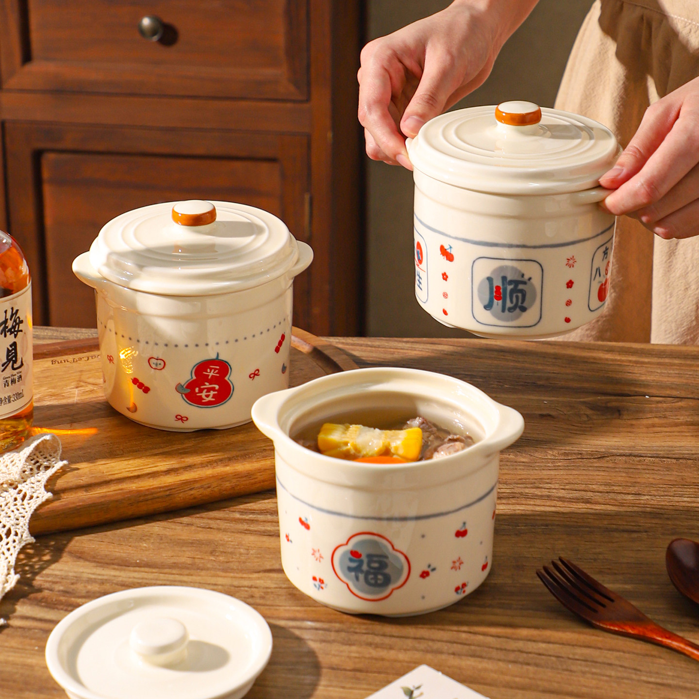 双盖设计|双耳设计|四机可进|釉下印花