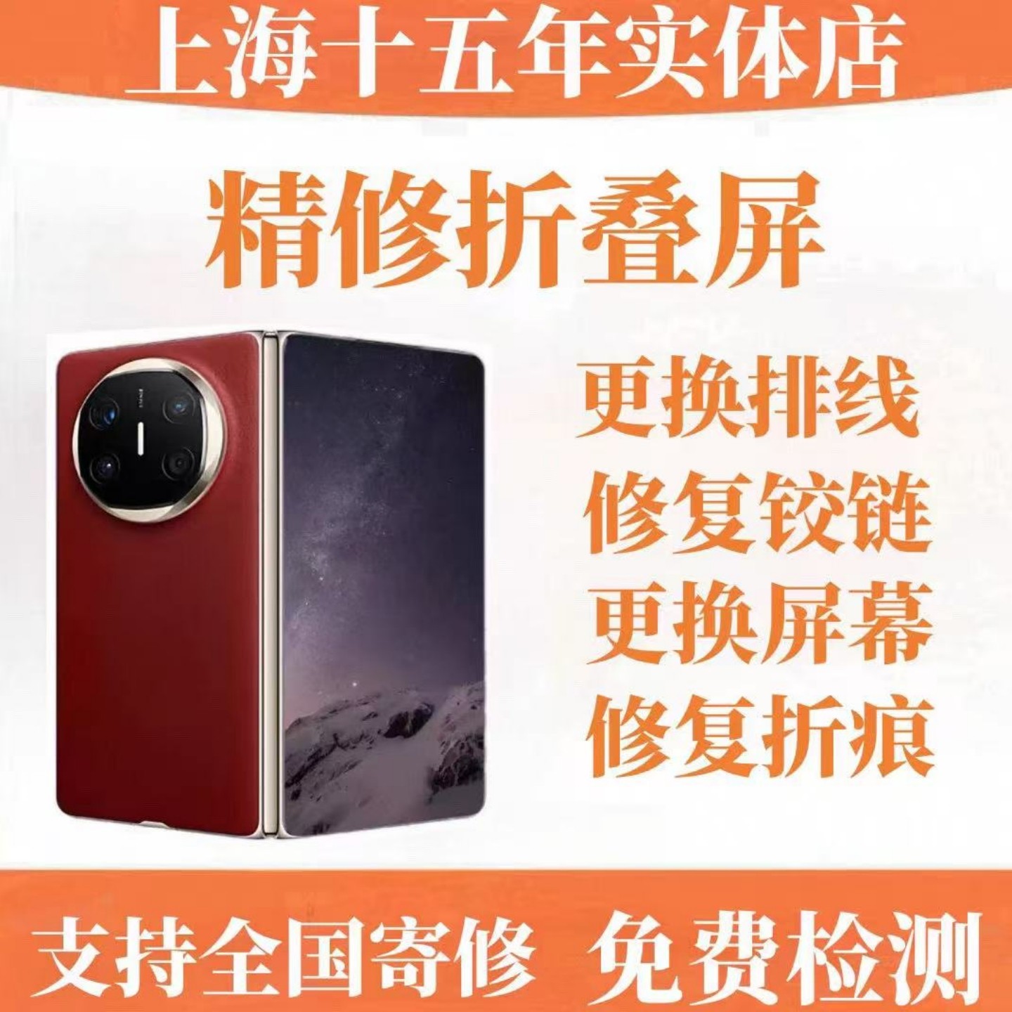 华为matex2/x5/xs2/x3/x6折叠屏换外屏转轴排线折痕铰链屏幕维修