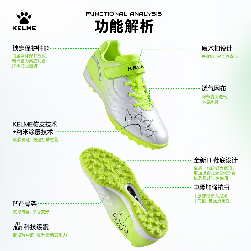 KELME卡尔美大师儿童足球鞋男童小学生女专用碎钉训练比赛青少年