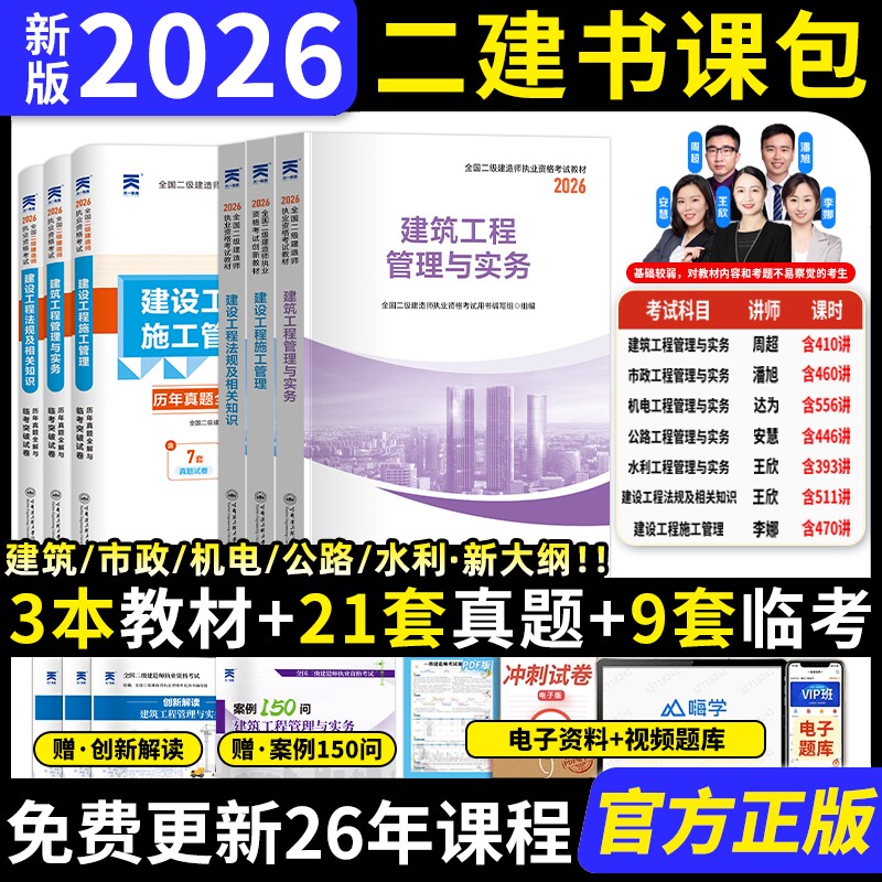 新大纲版二建建筑备考2026年教材全套考试二建教材书籍历年真题试卷练习题2025年二级建造师官方教材房建市政二建机电教材最新版