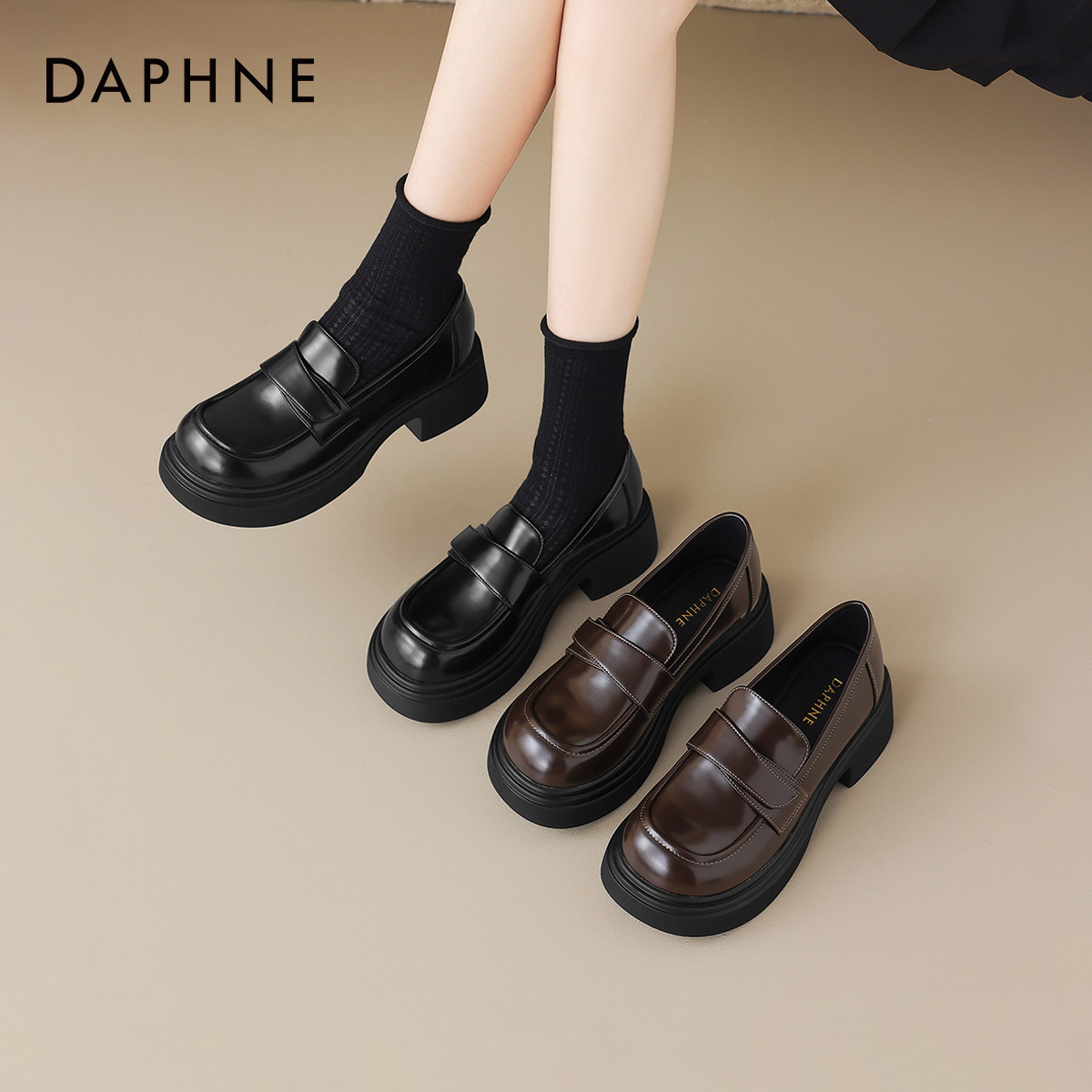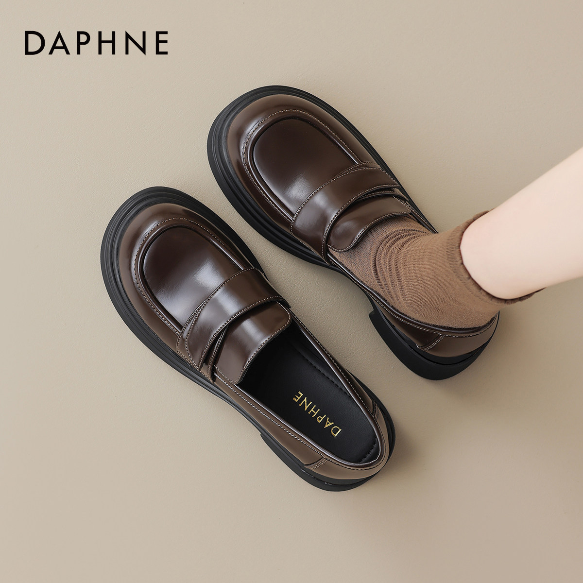 达芙妮棕色乐福鞋2026新款英伦风jk小皮鞋厚底女鞋子秋季粗跟单鞋