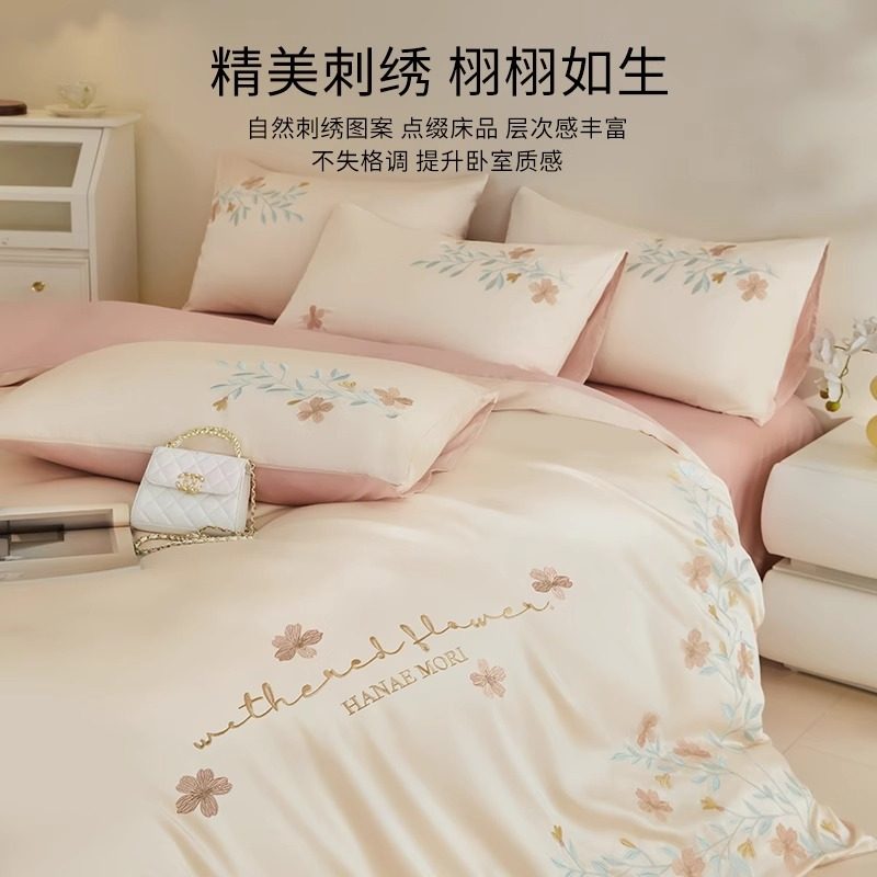60支简约纯色被套单件纯棉100全棉单人150x200x230双人被罩四件套