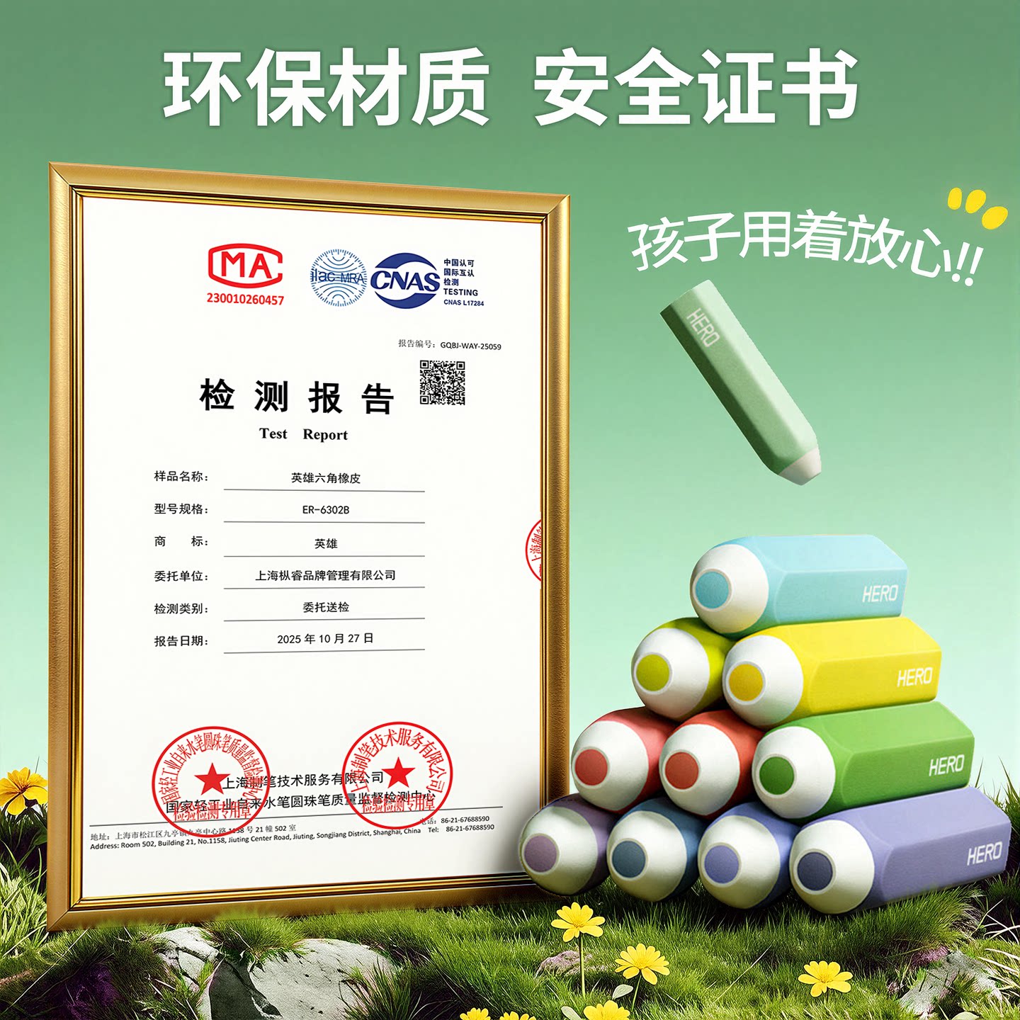 HERO英雄橡皮铅笔橡皮六角橡皮擦多色小学生专用创意高颜值儿童无屑超干净像皮擦字成线安全幼儿园擦写力强